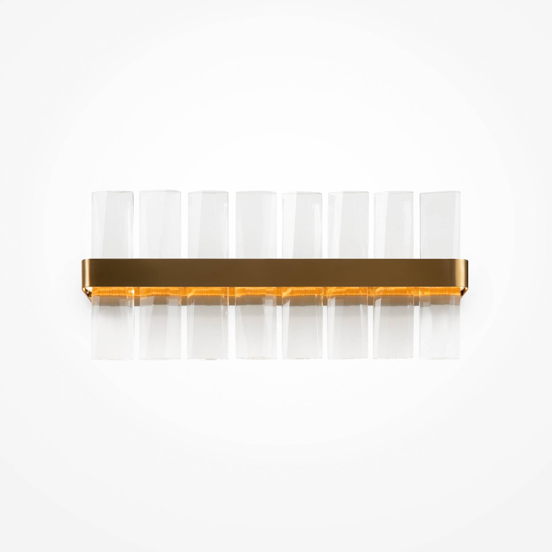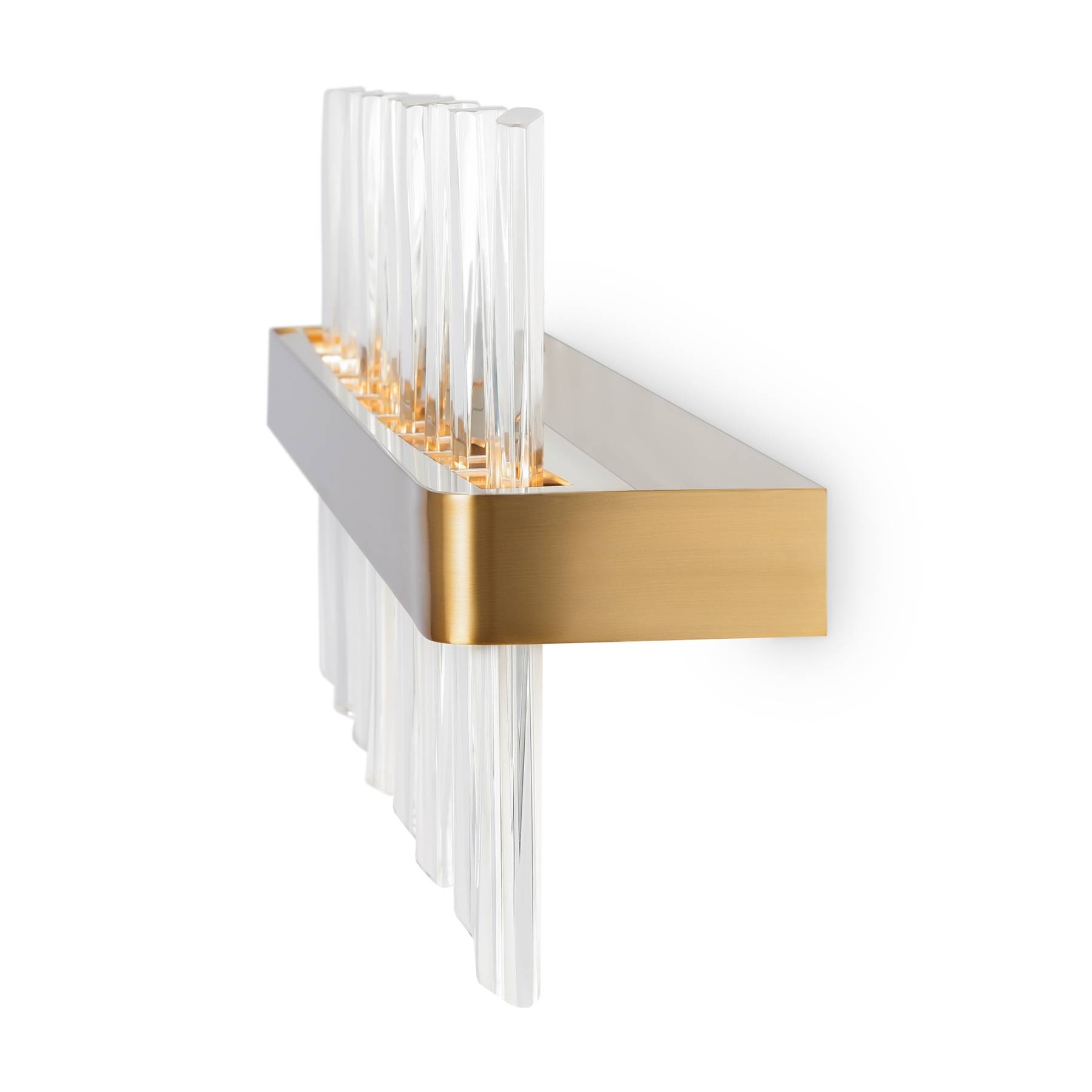 Материал арматуры - металл, цвет - латунь. Декор - объемные прозрачные хрустальные элементы с чередующимся рисунком. LED источник света, цветовая температура - 3000К. Регулируемая длина тросов.