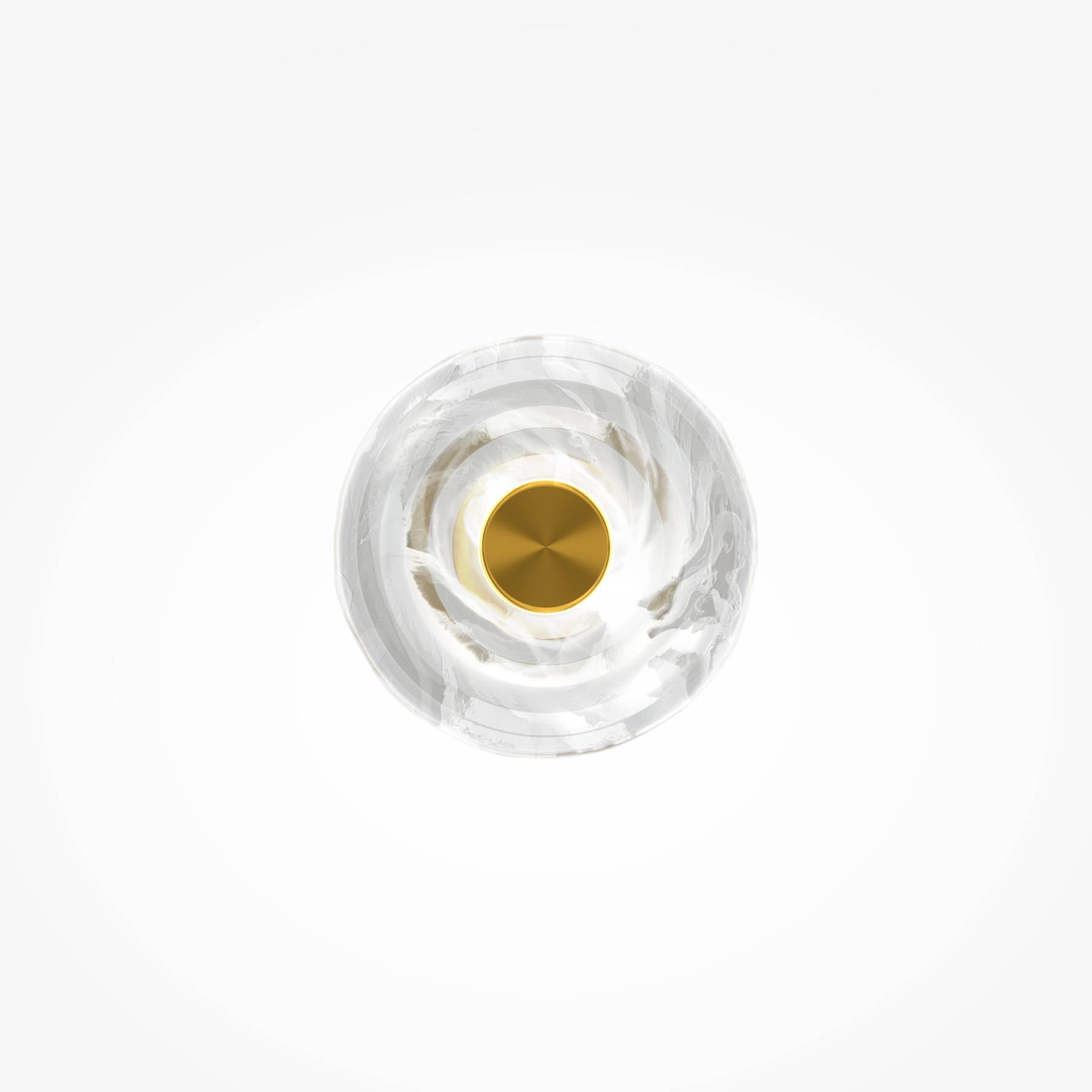 Металлическая арматура, цвет - латунь. Декоративные плафоны из литого стекла. Они рассеивают свет и дают легкие блики на стенах. Стекло плафонов может быть прозрачным или тонированным с паттерном молочного оттенка. Встроенный LED-источник света имеет цветовую температуру 3000 К, угол рассеивания — 120 градусов.
