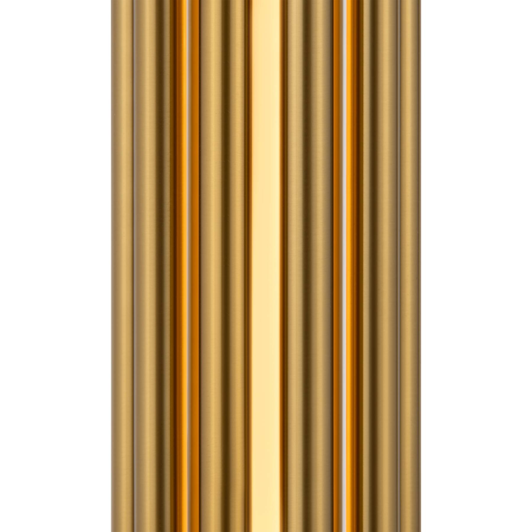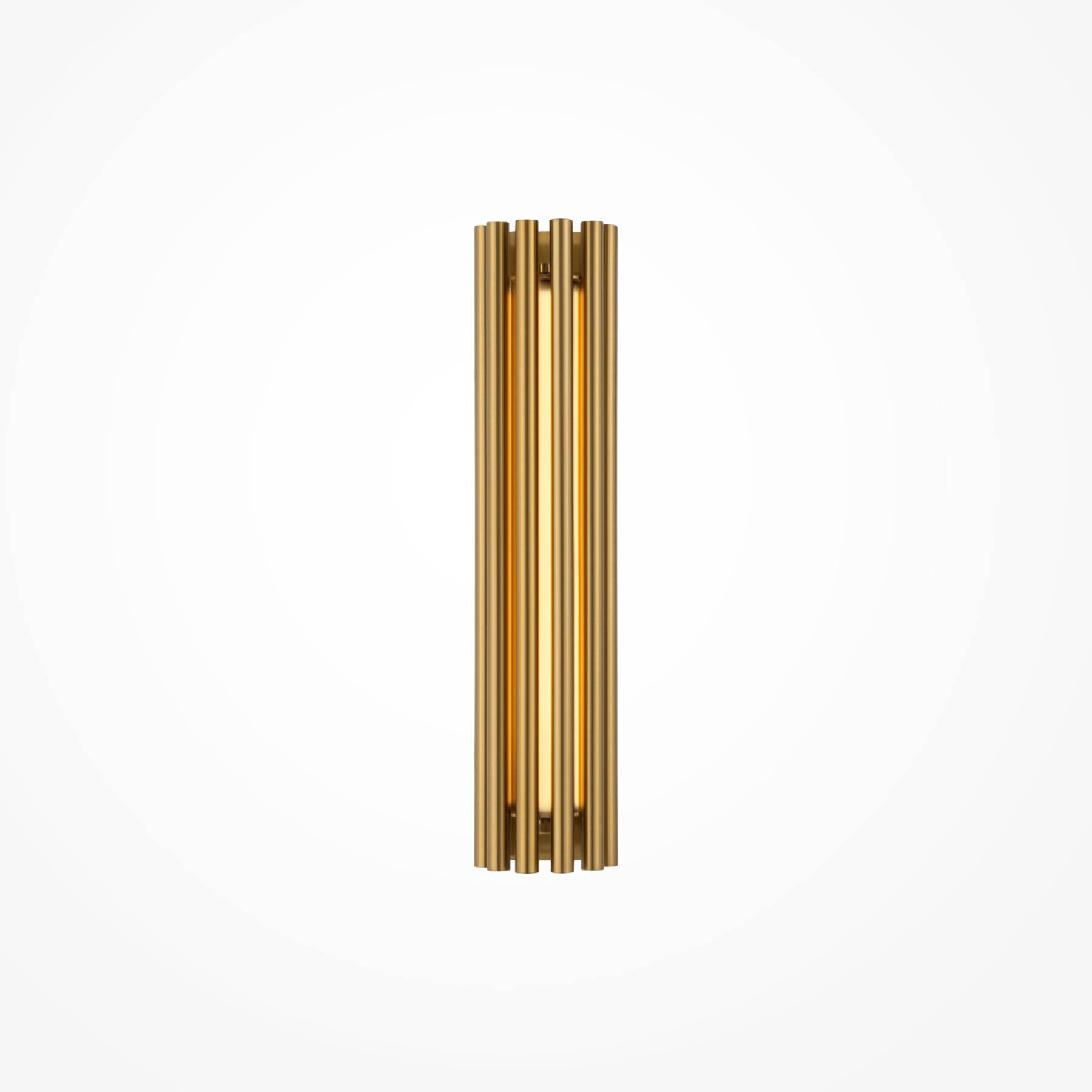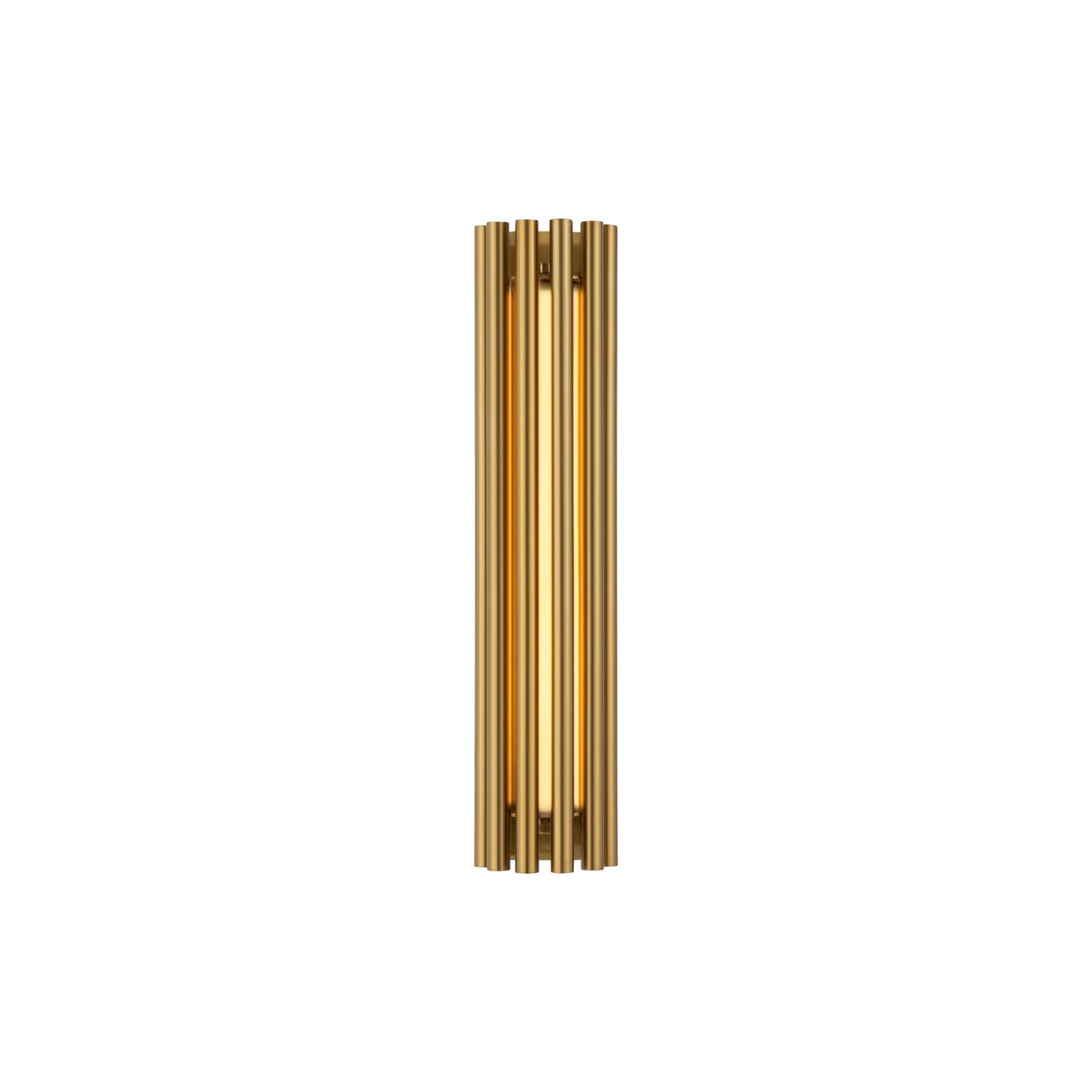 Алюминиевая арматура в двух оттенках: латунь, хром. Мягкий акриловый рассеиватель, плавное распределение света. Декор – металлические трубки в тон арматуре. LED-источник света, цветовая температура 3000К.