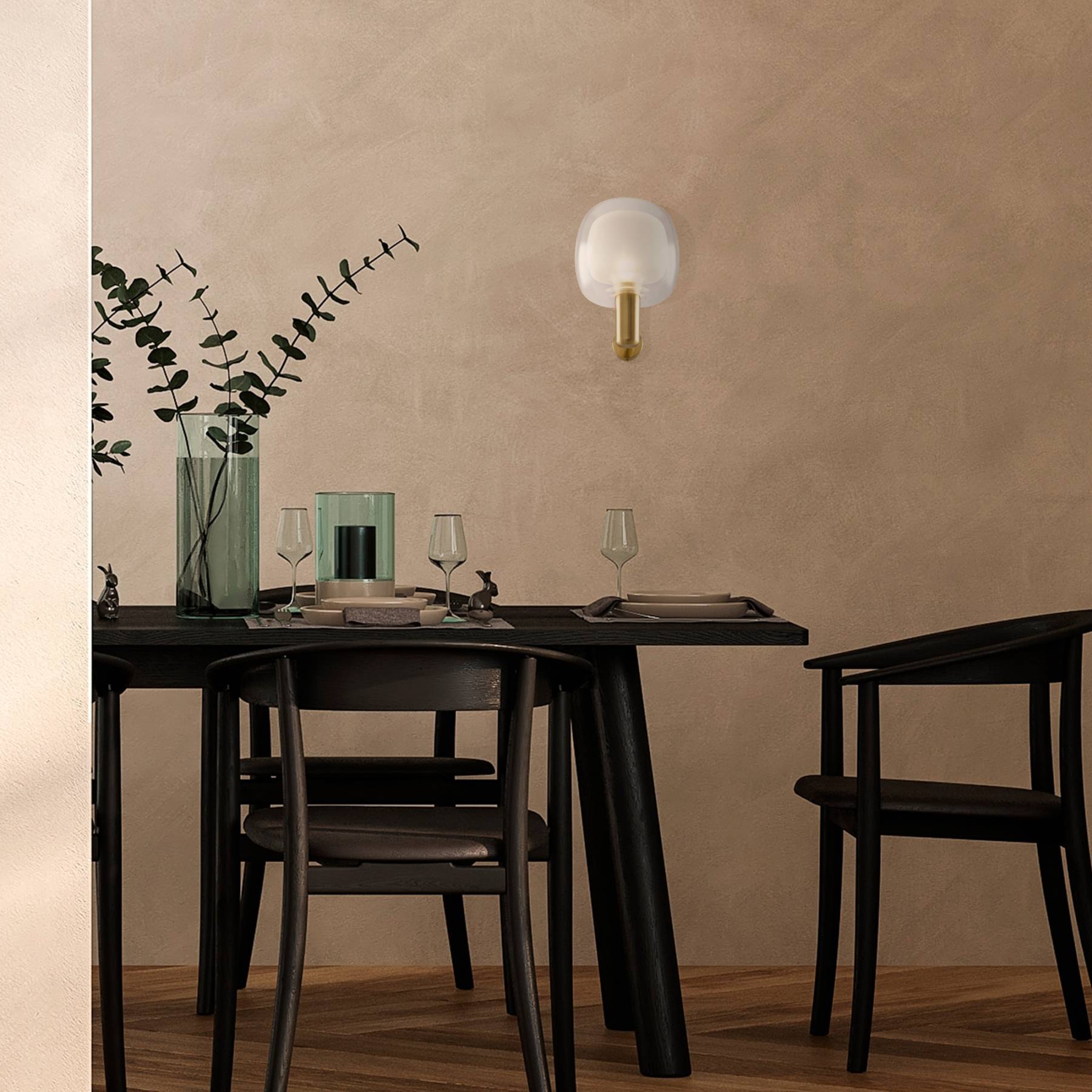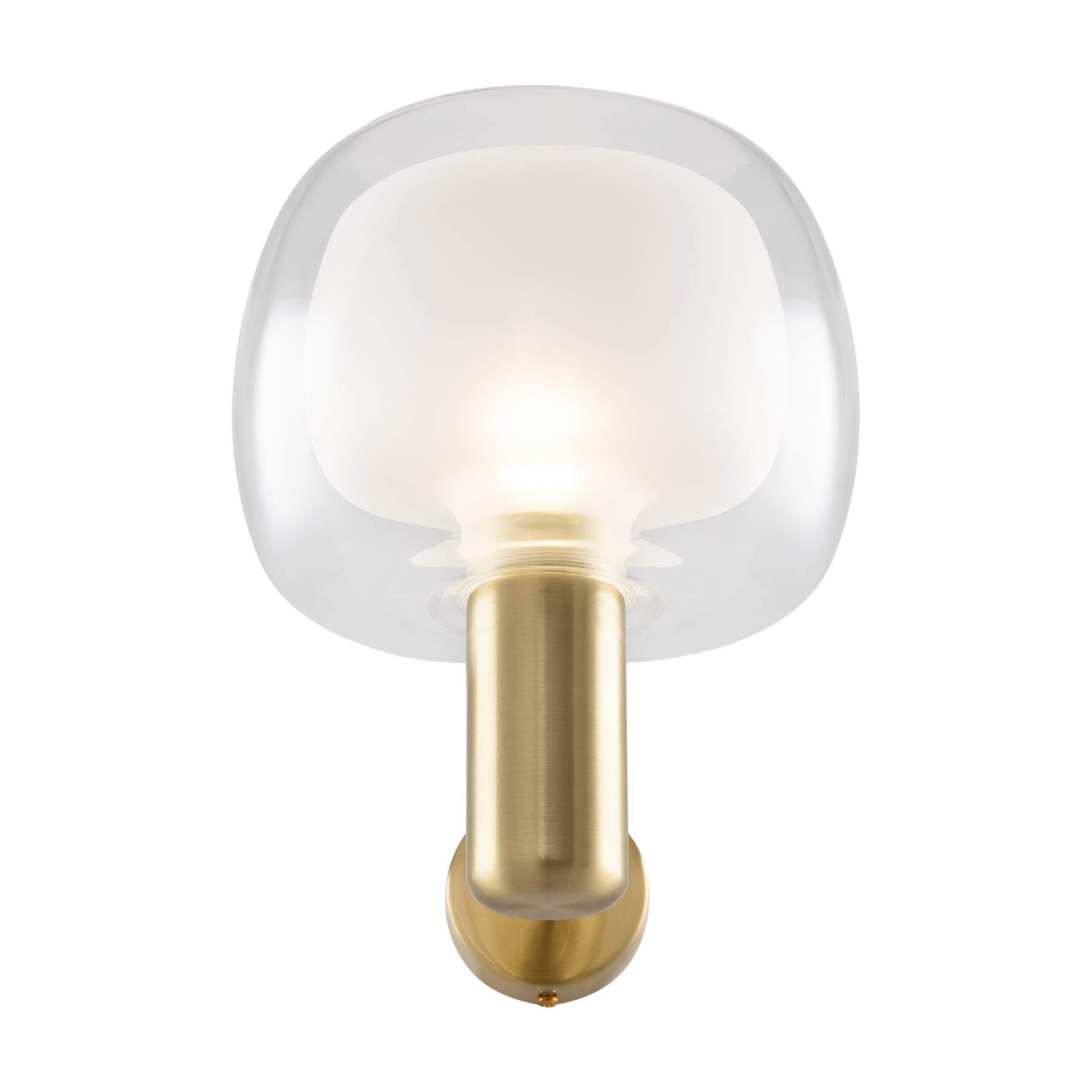 Арматура – алюминий, цвет – золото. Двойной стеклянный плафон: внутренний – матовый, внешний – прозрачный. Стиль – итальянская неоклассика. Культовые формы 60-х в дизайне.