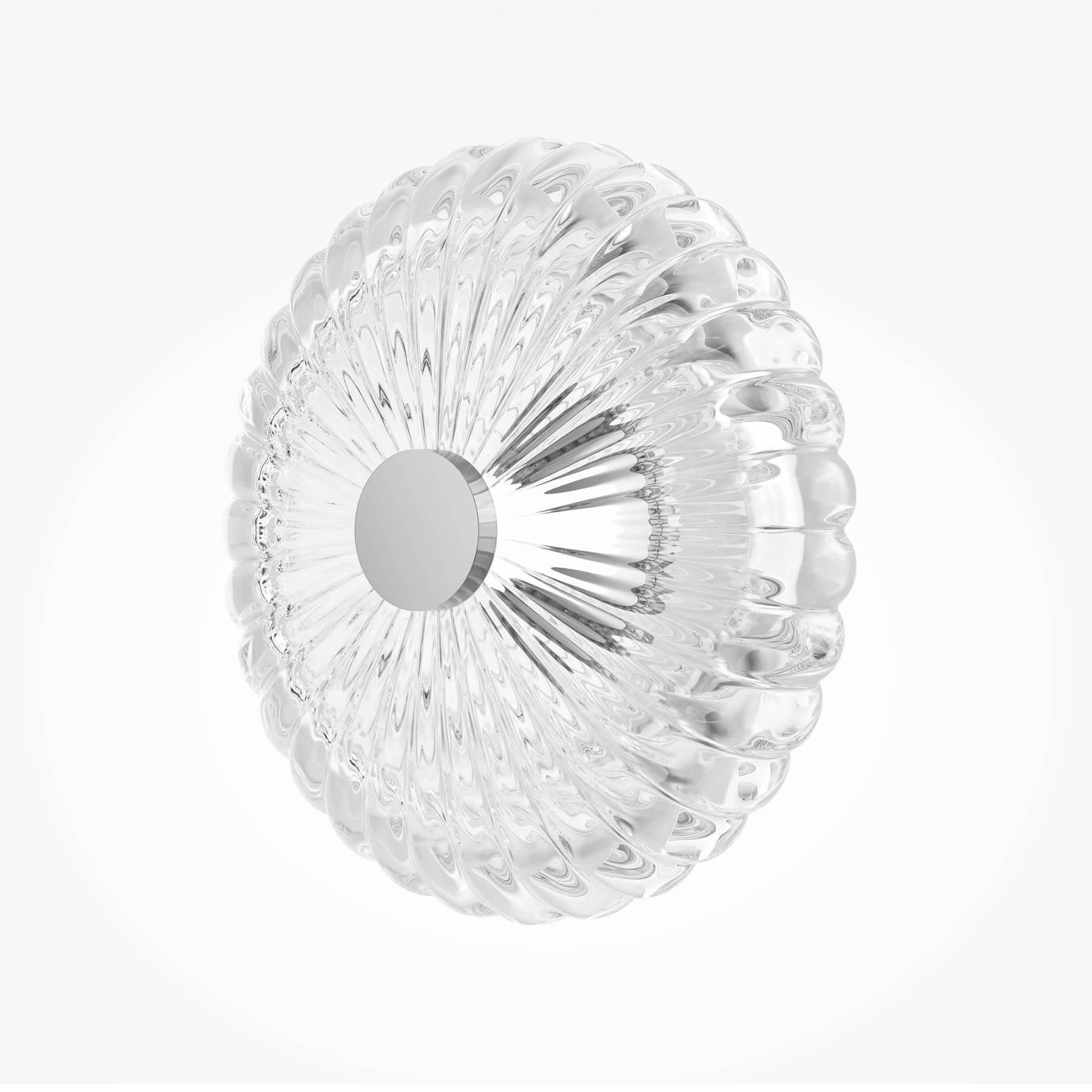 Арматура из металла, цвет – хром. Акцентный декор в виде рельефных сфер из литого стекла. Источник света – светодиодная лента – скрыта под акриловым рассеивателем. Регулируемая высота подвесных светильников.