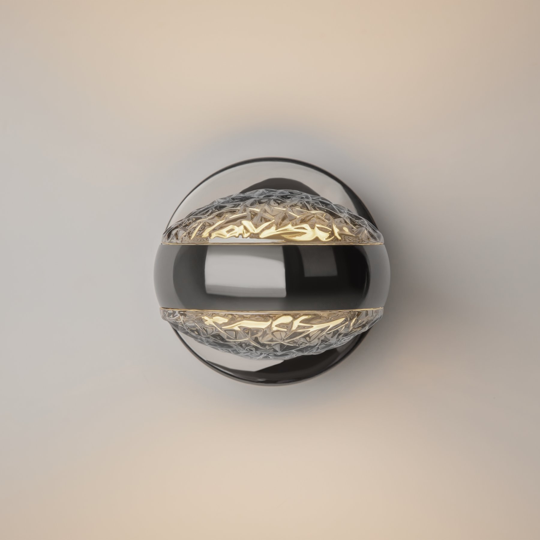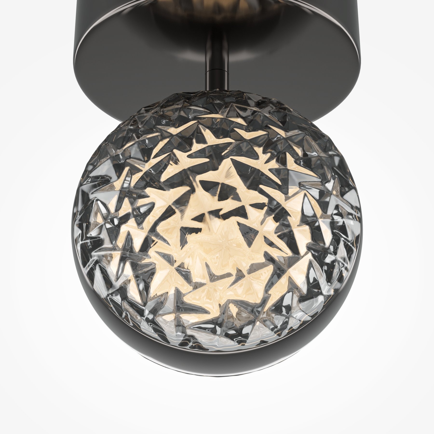 Два цветовых сочетания: сатинированная арматура из металла в цвете латунь в комбинации со стеклянными плафонами янтарного оттенка или трендовый черный хром с глянцевым финишем в сочетании с тонированными светло-серыми плафонами. Источник света: LED. Цветовая температура 3000К, угол рассеивания 120 градусов. Провод длиной 3 м можно регулировать по высоте — светильник подходит для помещений с высокими потолками.