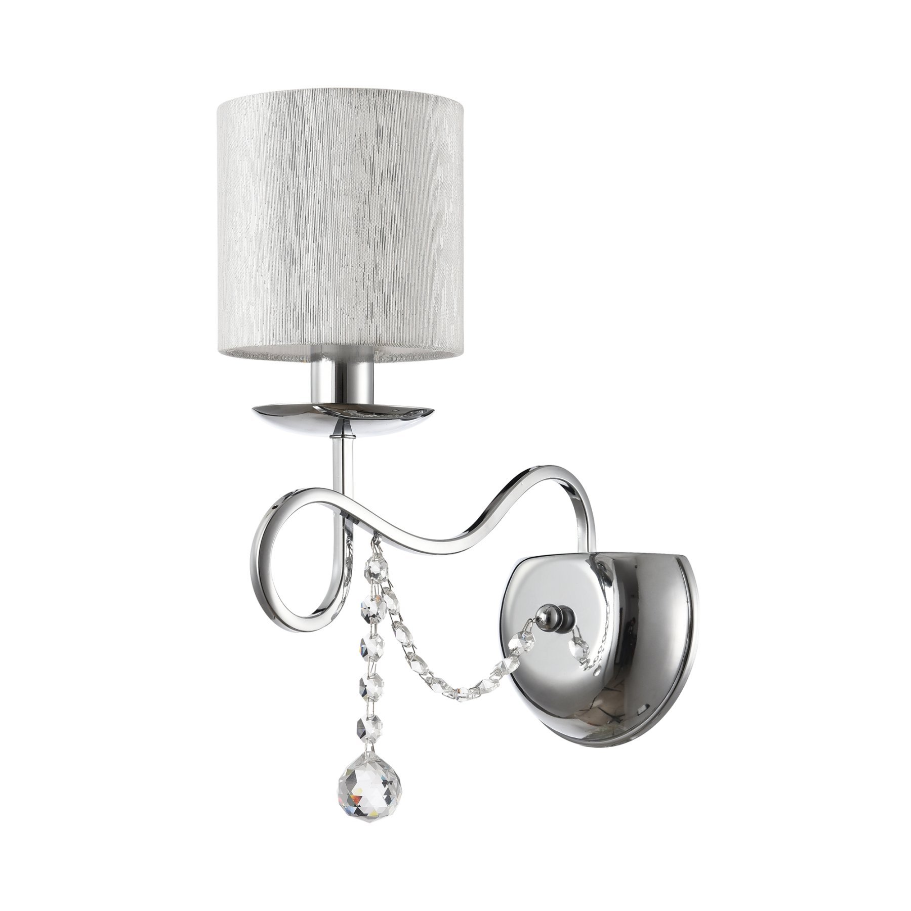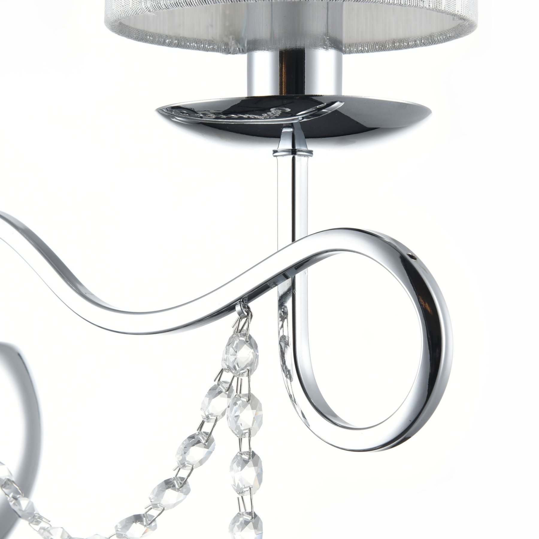 Нарядные и изящные светильники Morel выполнены в классическом стиле. Светлые абажуры сделаны из органзы, арматура – из металла цвета "хром". Каждый из светильников этой серии декорирован хрусталем в виде лент из кристаллов в форме октагонов и шара.