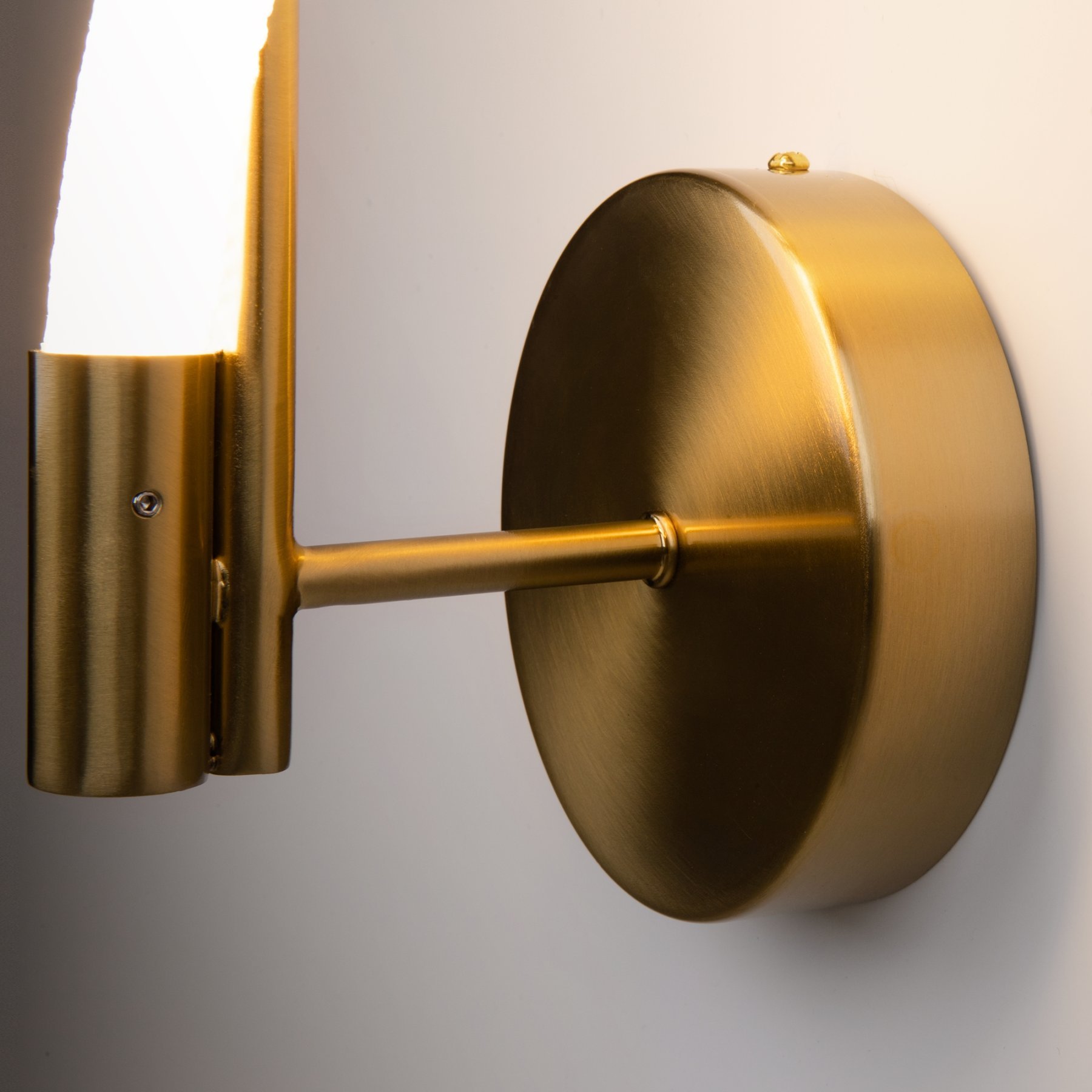Арматура из металла цвета латуни, материал рассеивателя – текстильный жгут, декоративные элементы выполнены из прозрачного выдувного стекла. LED-источник света. Цветовая температура 3000К, угол рассеивания света 360°. Вертикальное настенное бра включается touch-сенсором. Тканевый шнур. Высота подвесных светильников  регулируется.