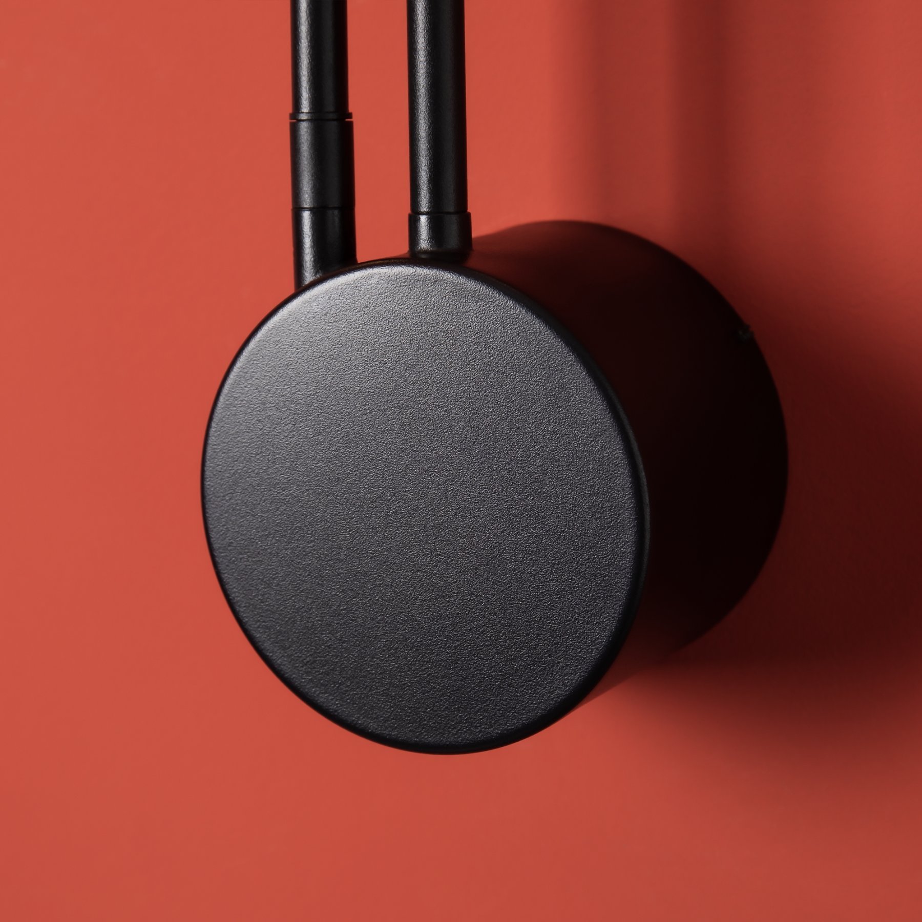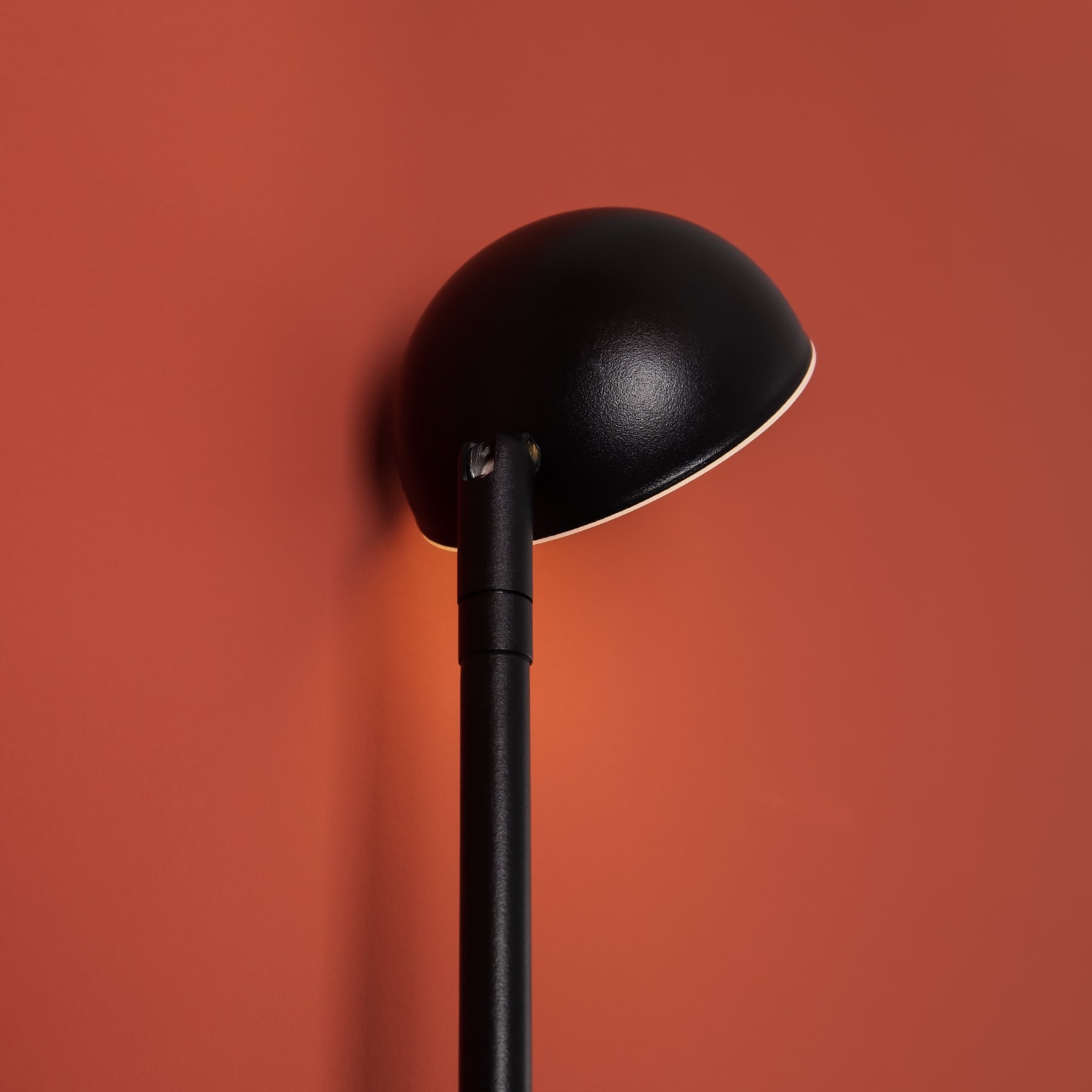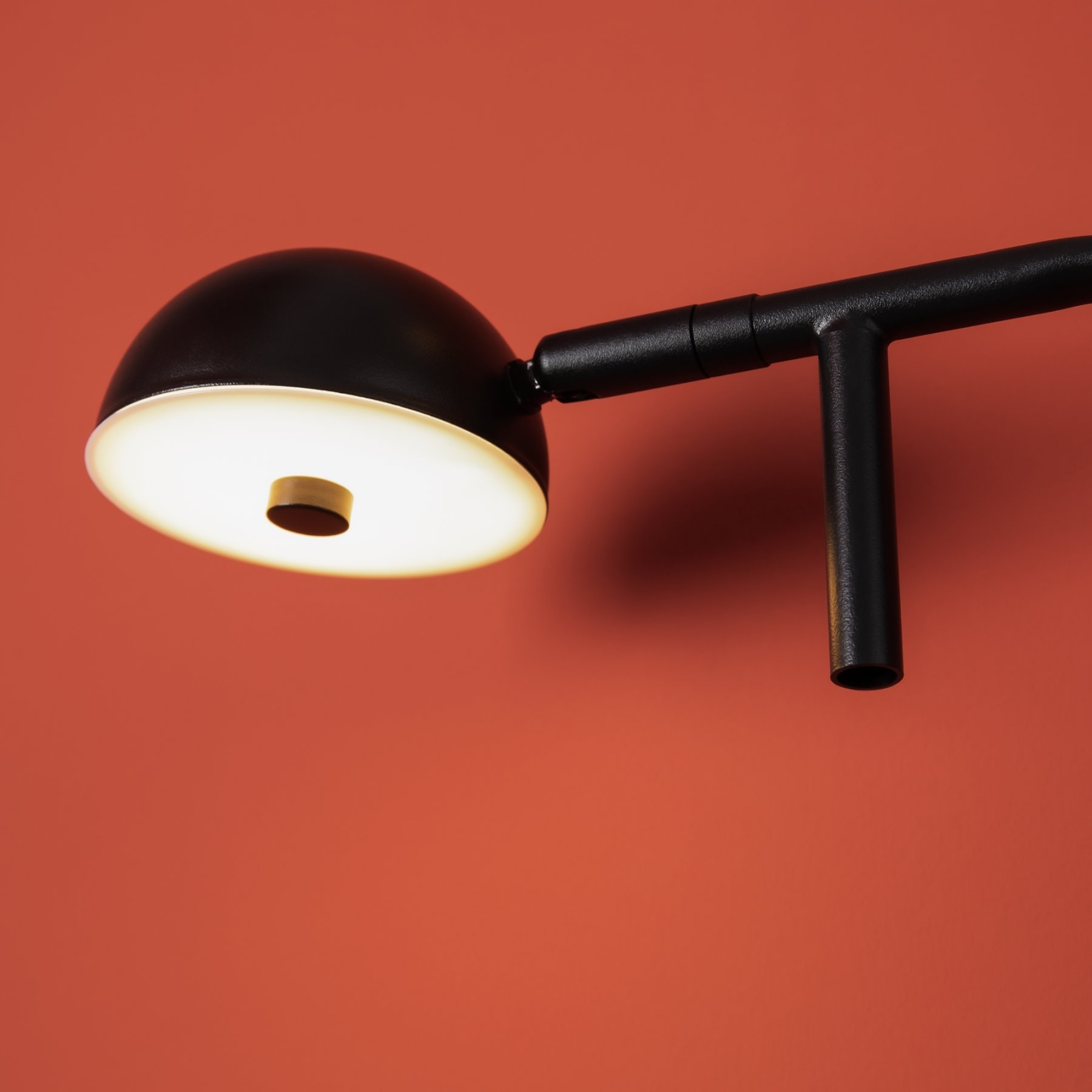Материал арматуры — металл, цвет — черный. Напольный торшер и настенные светильники оснащены LED-источниками света с цветовой температурой 2700К. Полусферические поворотные мини плафоны с LED освещением подчеркивают монохромную концепцию дизайна. Подходит для создания минималистичных и лофт интерьеров.