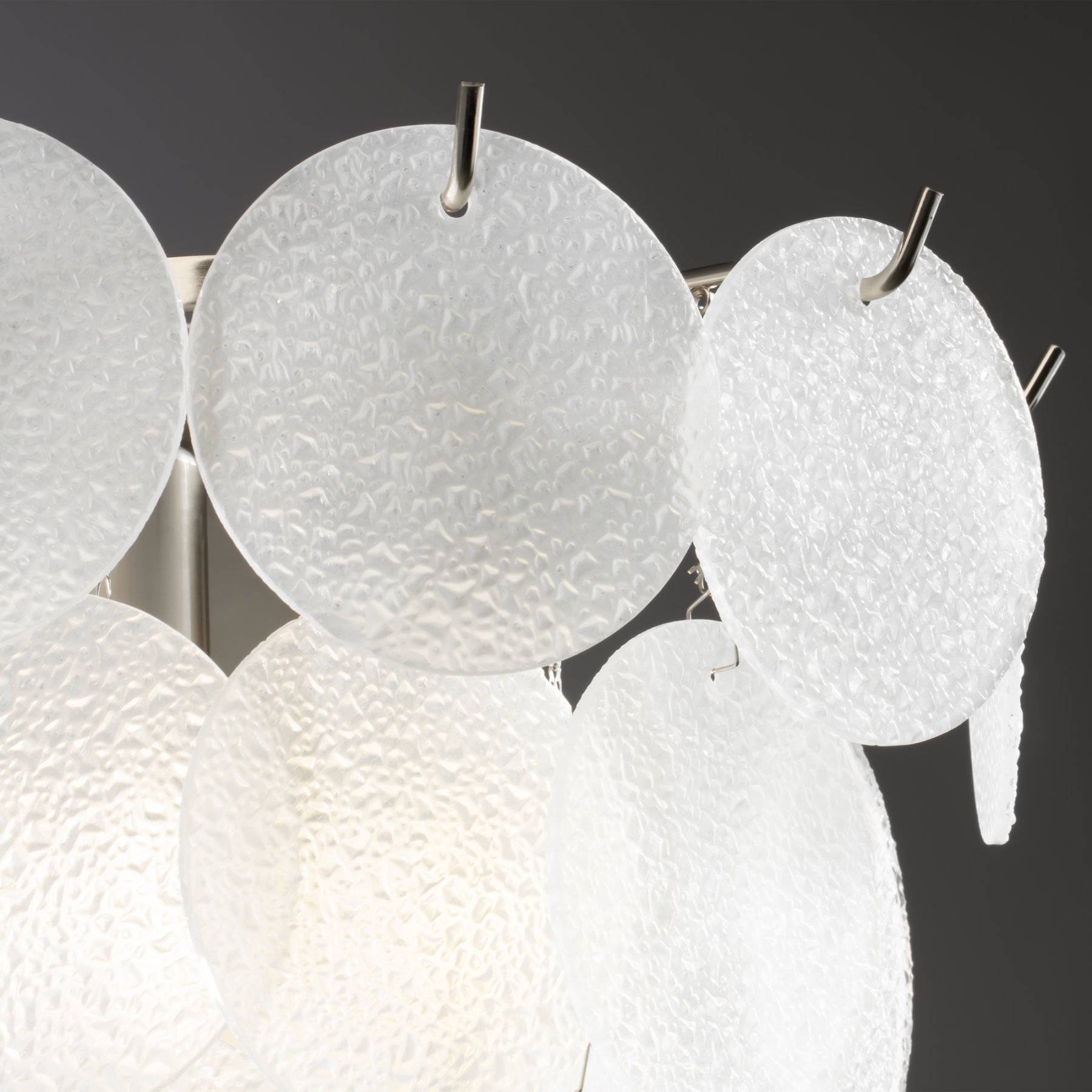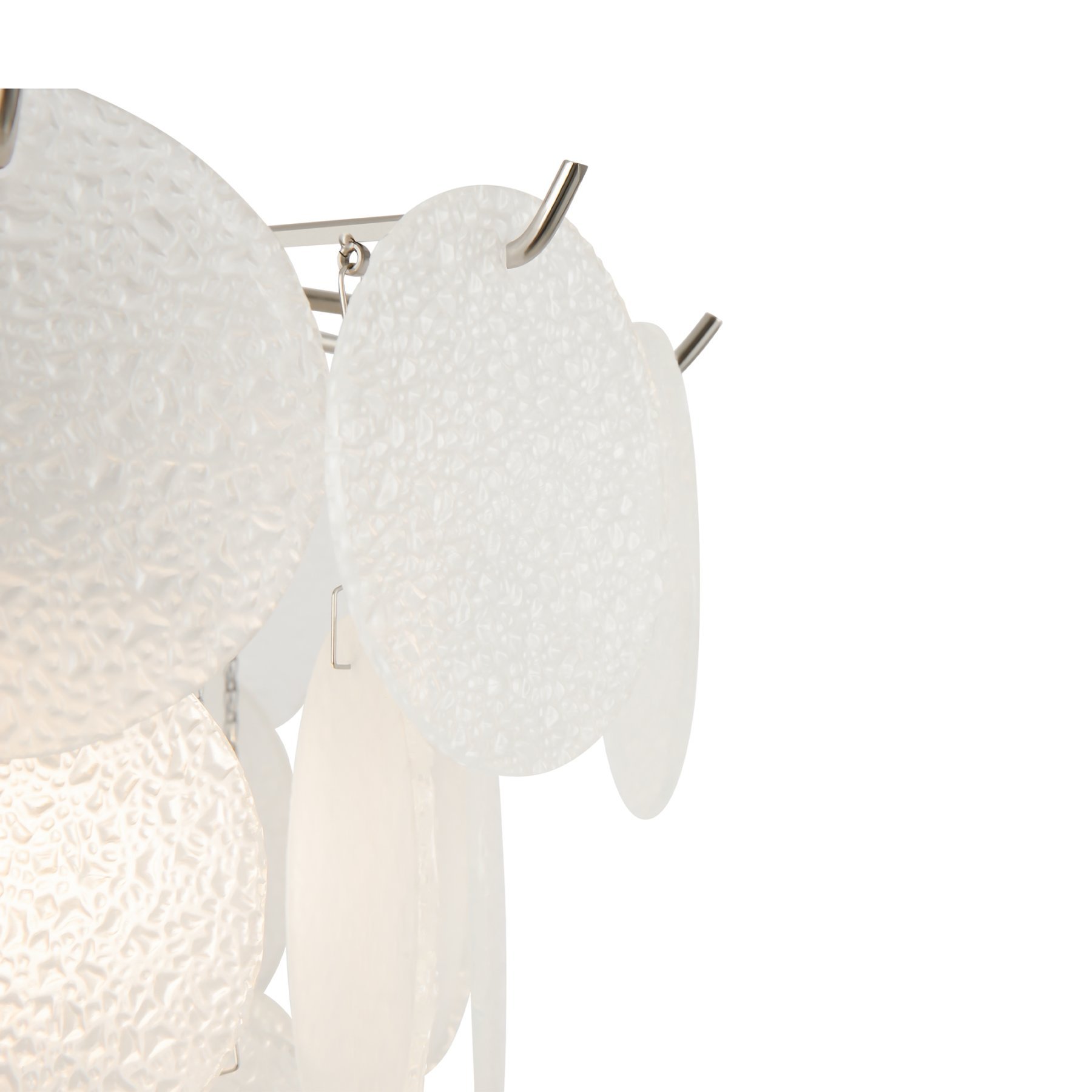 Магия фактур запечатлена в дизайне серии Porto. Изюминка модели – декор в виде тонких округлых пластин с эффектом замороженного стекла. Популярная серия имеет два цветовых решения: декор цвета рисовых полей, а также комбинация фактурного стекла и металлических пластин в цвете латунь. Арматура светильников в серии представлена в двух оттенках – латунь и никель. Тонко очерченные рожки и воздушный стеклянный декор создают трендовый эффект парения. Светильник словно замирает в воздухе, образуя своеобразную визуальную иллюзию. Модель предназначена для комнат, оформленных в стиле ар-деко, модерн, неоклассика. Серия включает люстры различного диаметра на 6 и 8 ламп.