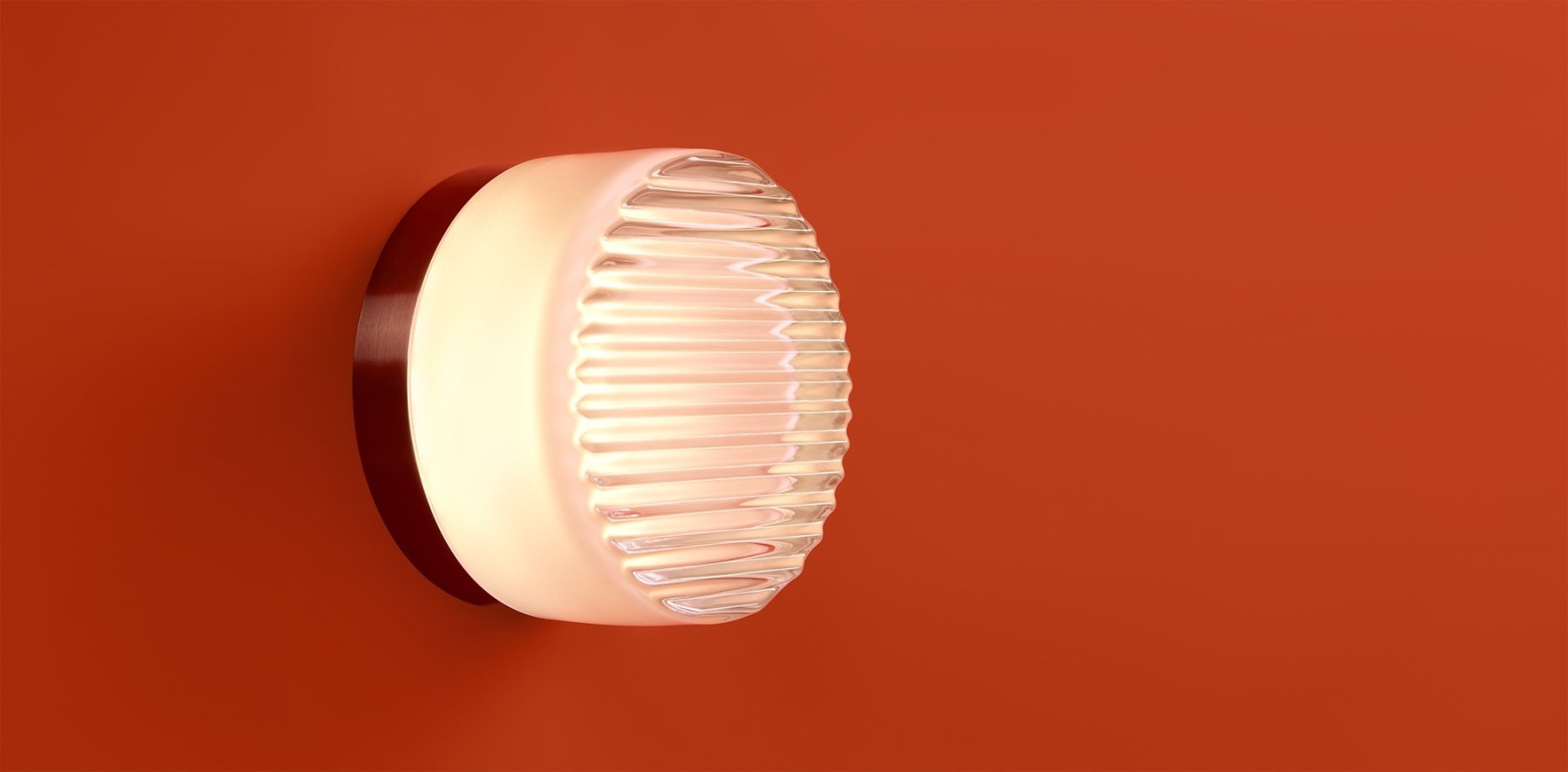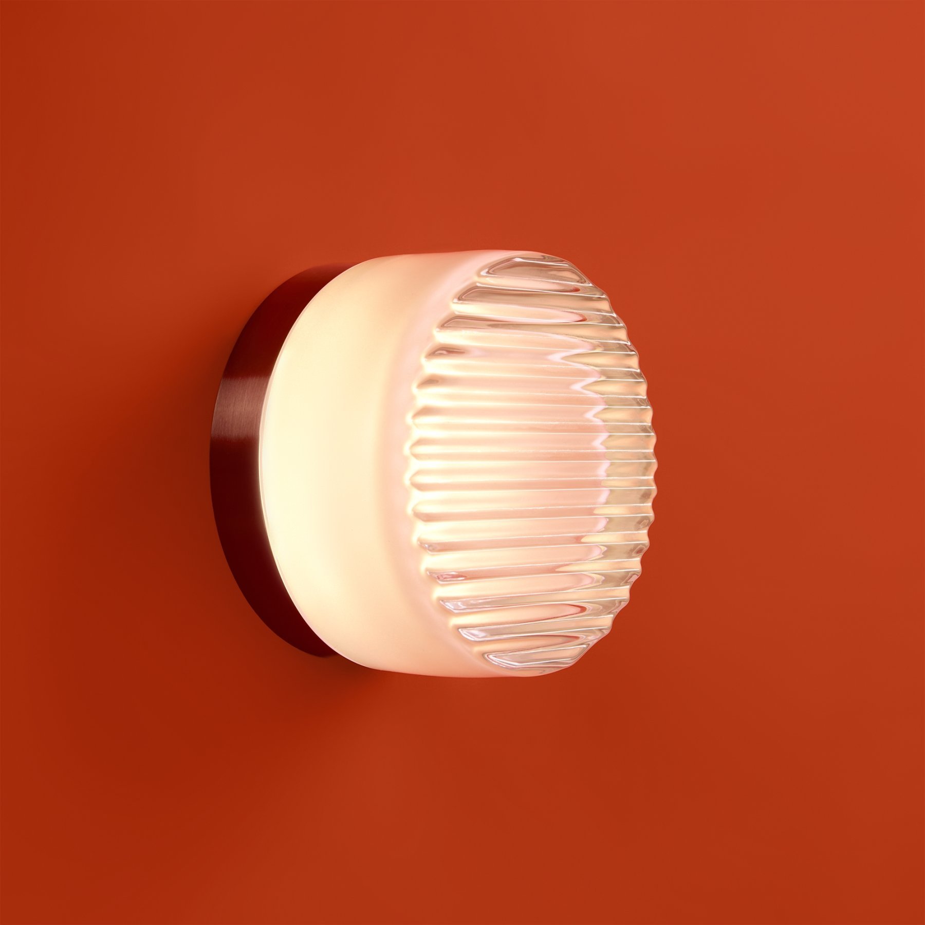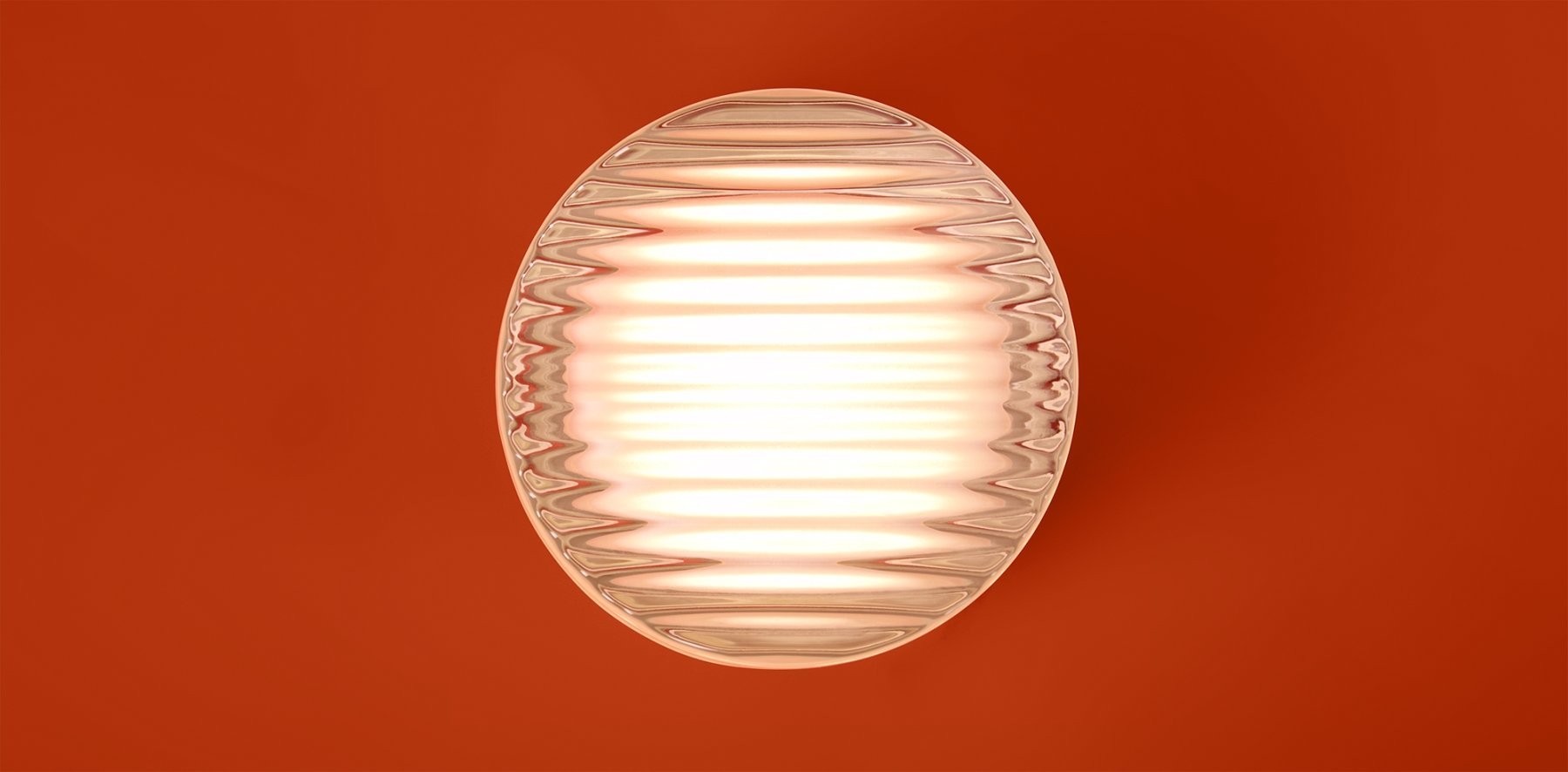 Металлическая арматура в цвете никель в трех рельефных основаниях. Плафоны, выполненные в приглушенно пшеничном и янтарном оттенках, доступны в двух размерах. LED источник света 2400К/2550К/3000K.