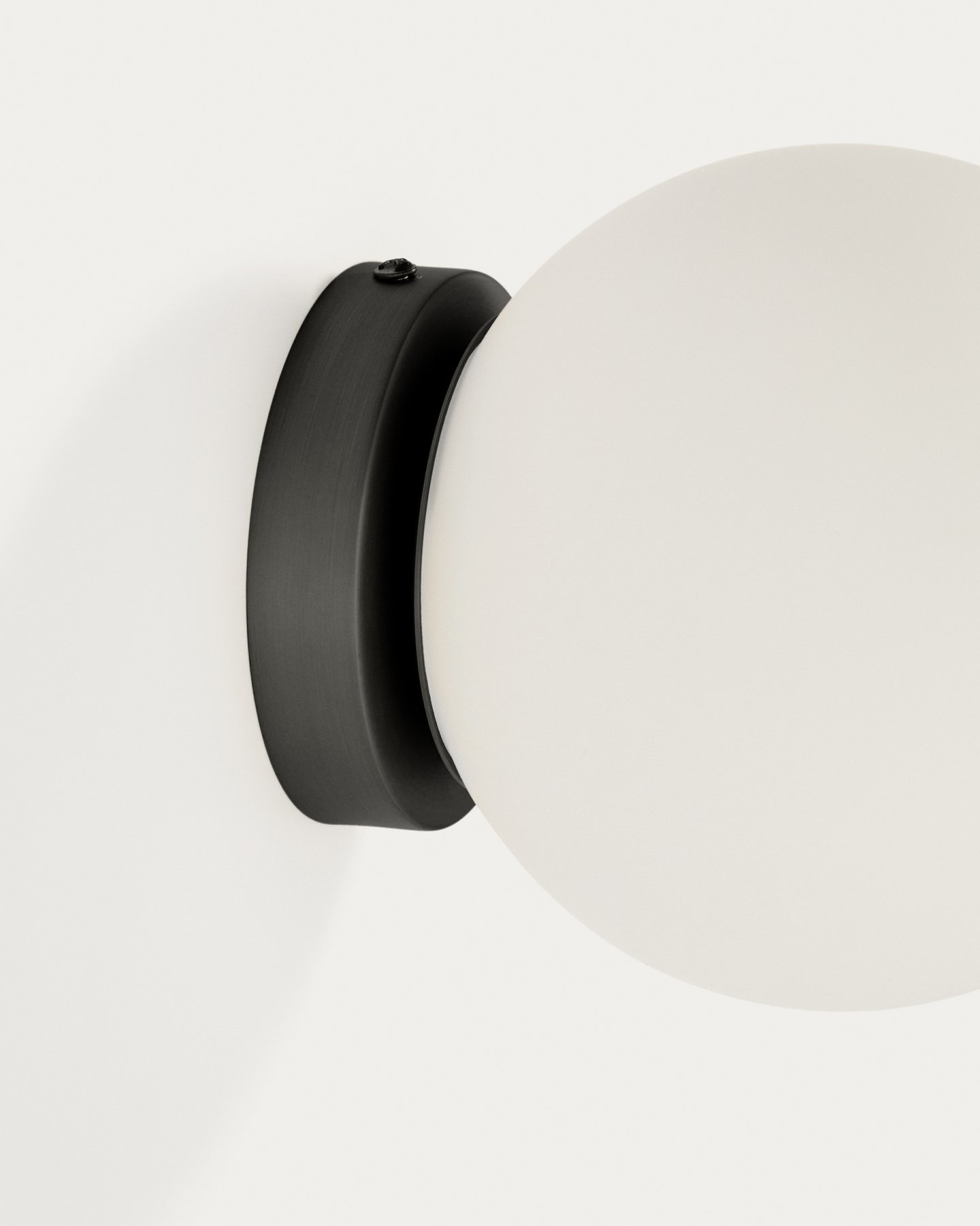 Brisia сочетает геометрию и элегантность в современном дизайне, отличающемся балансом материалов и форм. Корпус из черного металла придает изысканность, а сферический матовый стеклянный плафон смягчает свет, создавая обволакивающее и уютное освещение. Универсальный дизайн позволяет легко интегрировать светильник в различные пространства, добавляя индивидуальности и стиля. Светильник совместим с лампами E27 мощностью до 25 Вт (приобретаются отдельно).