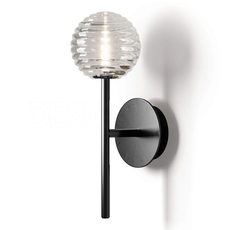 Настенный светильник, выполненный из стекла и стали в черным или золотистом цвете.