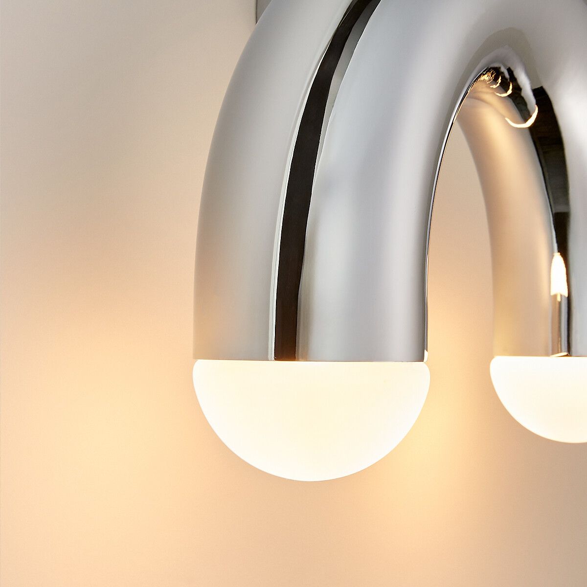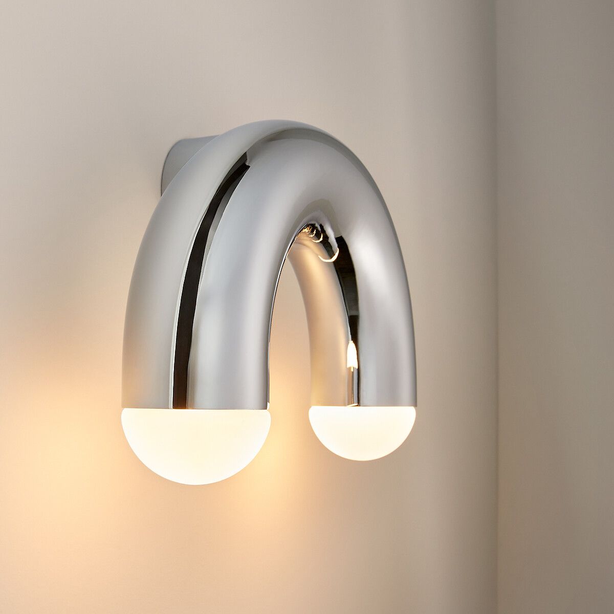 Как произведение искусства, вдохновленное дизайном 70-х годов, настенный светильник Quillo имеет архитектурно изогнутую трубчатую конструкцию. С обеих сторон две лампочки, помещенные в полусферу из матового стекла, рассеивают мягкий, приглушенный свет. Творение La Redoute Intérieurs.