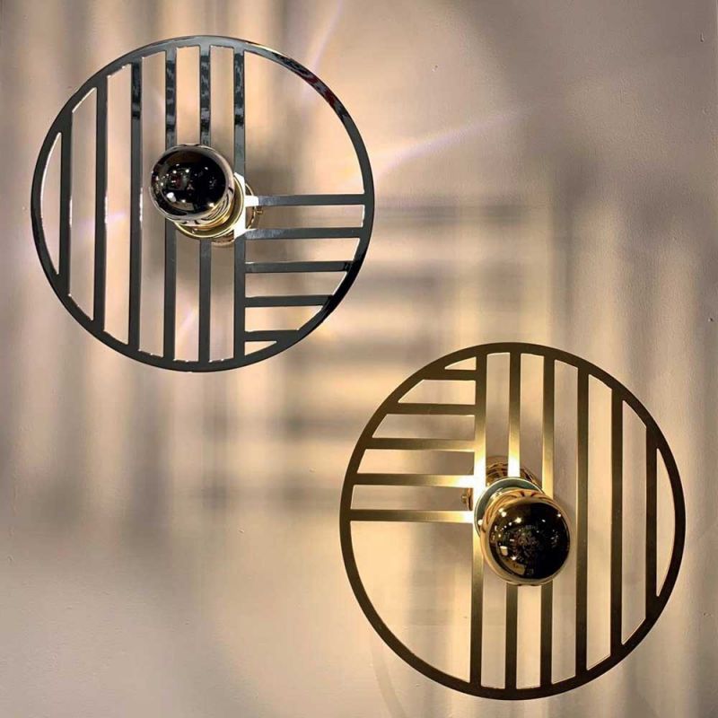 Line - это настенный светильник с современным дизайном и некой ретро-атмосферой. Он отличается наличием декоративной металлической детали круглой формы с горизонтальными и вертикальными линиями. Эти линии создают очень оригинальный световой эффект на стене.