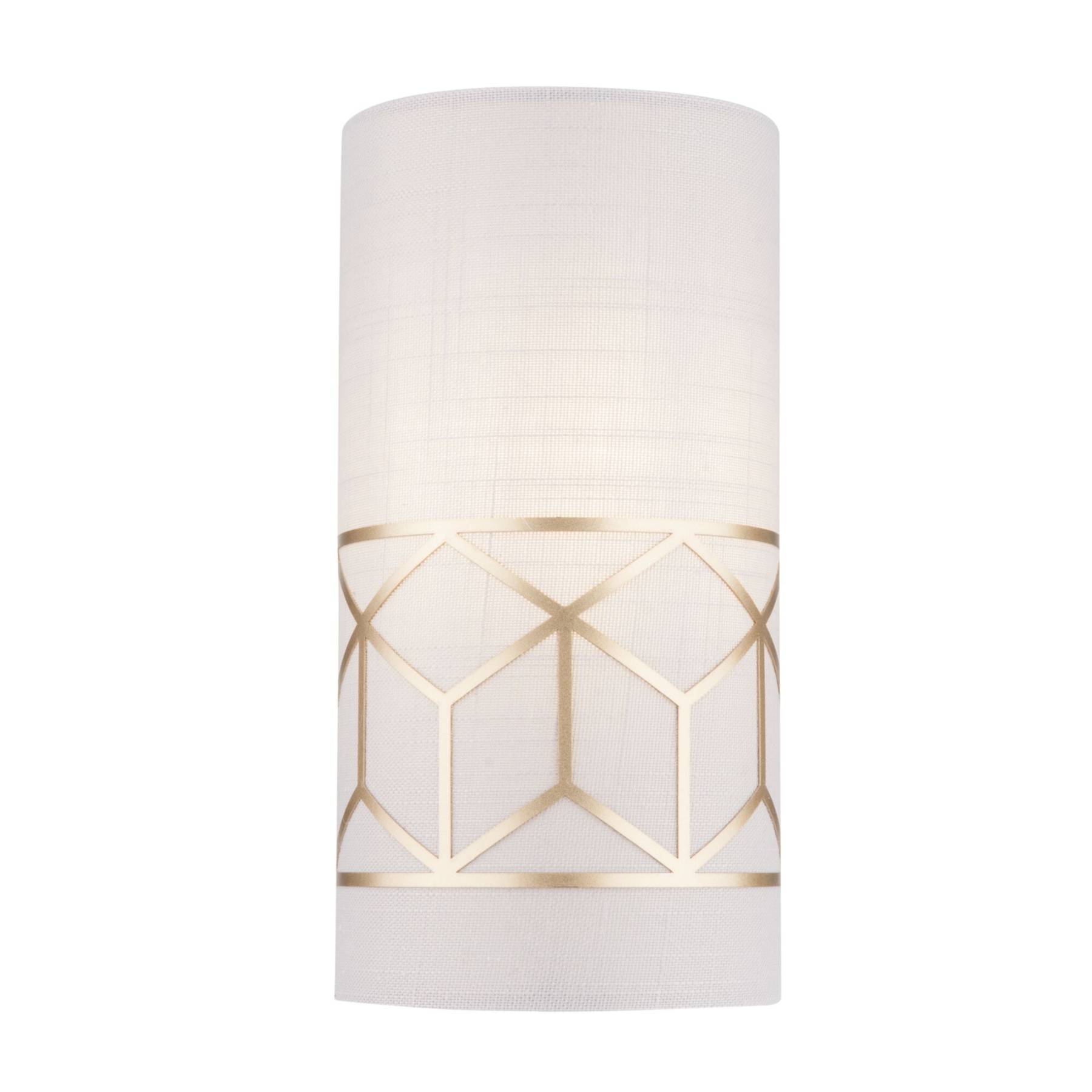 Арматура из металла золотого цвета. Абажур – натуральный лен на ПВХ. Металли ческий орнамент опоясывает абажур. Льняной рассеиватель.
