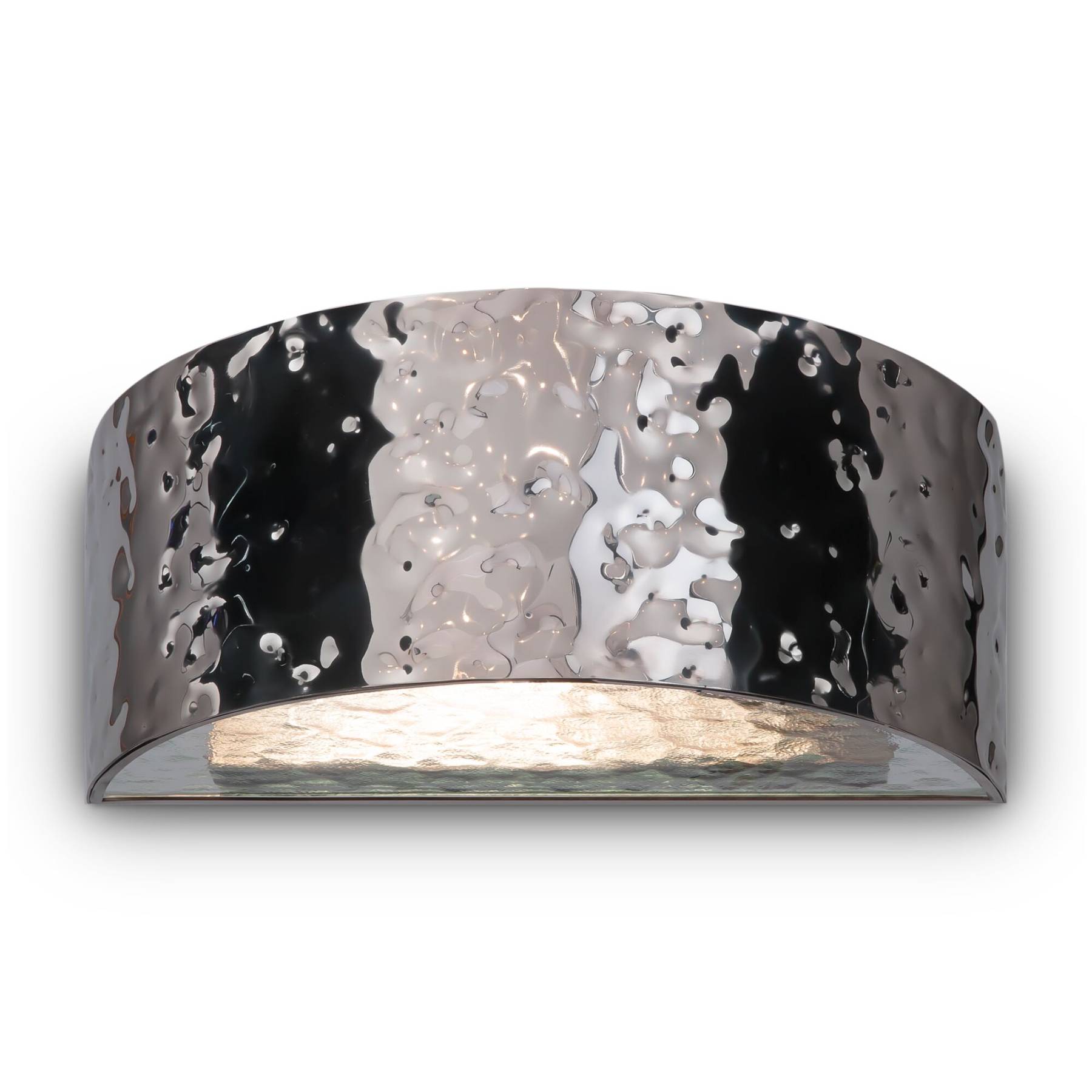 Арматура – металл в цветах хром и золото. Фактурный рисунок нанесен посредством чеканки. Стекло с рельефной поверхностью скрывает источники света. Декора тивный эффект «рябь на воде». Источник света - лампа с цоколем Е14.