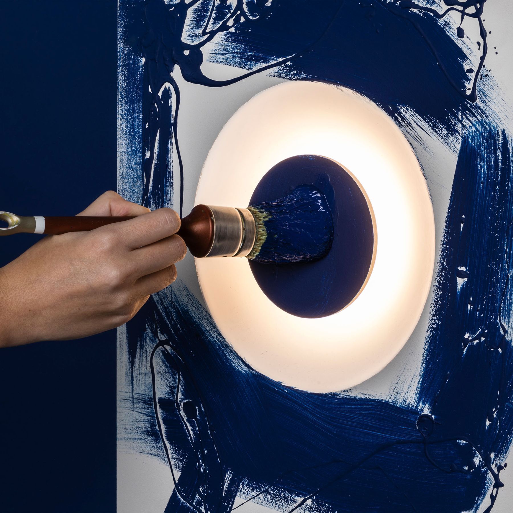 NAVI — это настенный светильник из круглого гипса с кругом внутри. Свет качества между двумя сферами природного происхождения. он изготовлен из гипса, его можно покрасить в цвет стены и интегрировать в пространство.