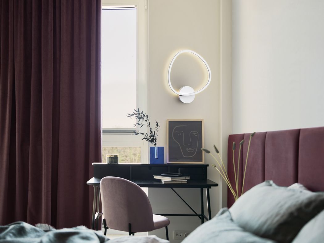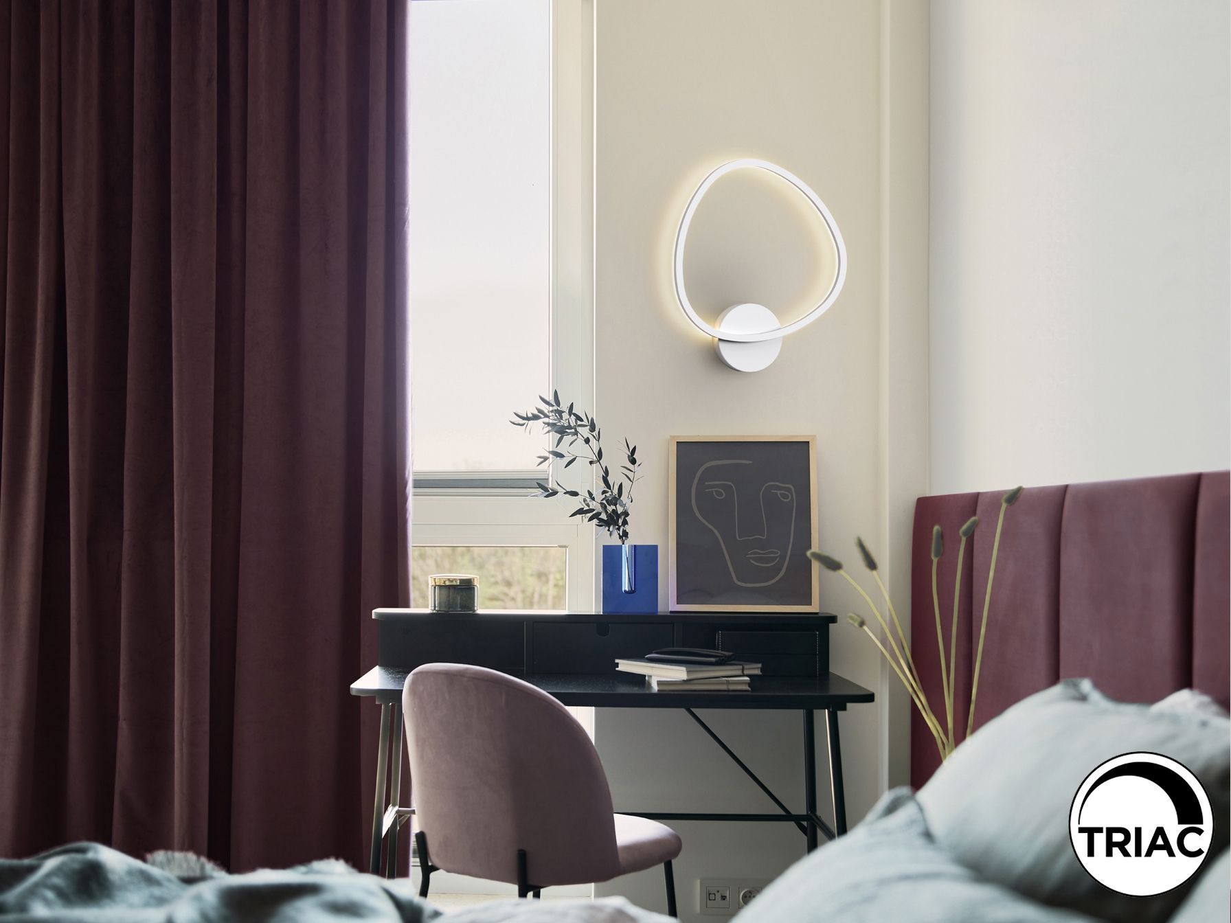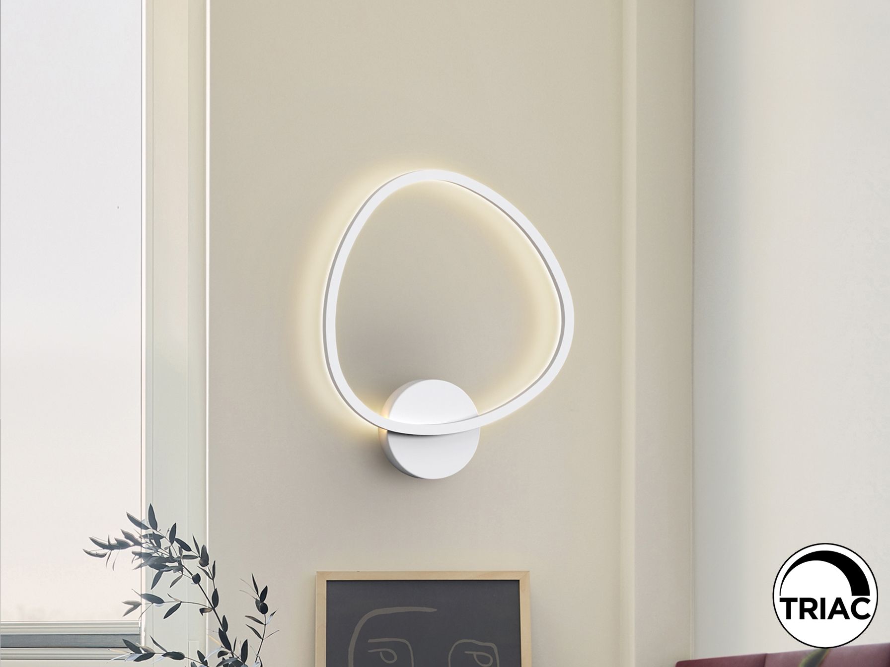 Настенный светильник из алюминия, матово-белая отделка. Рассеиватель из опалового акрила. Светодиод 27 Вт, 1,396 лм. 3,000 К. РЕГУЛИРУЕМАЯ ЯРКОСТЬ.