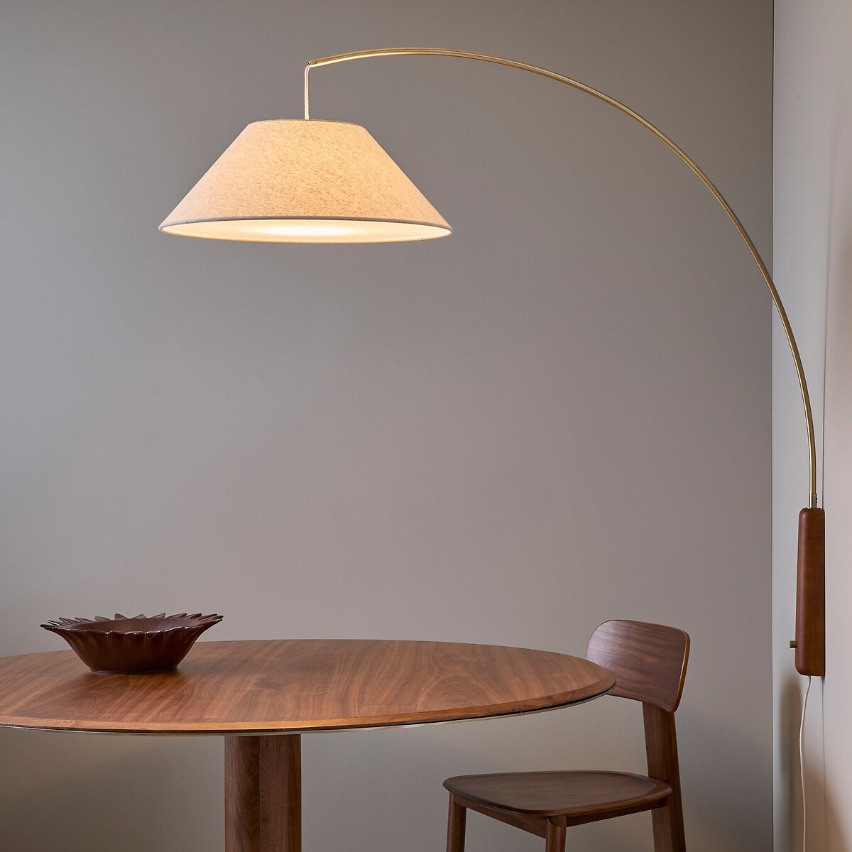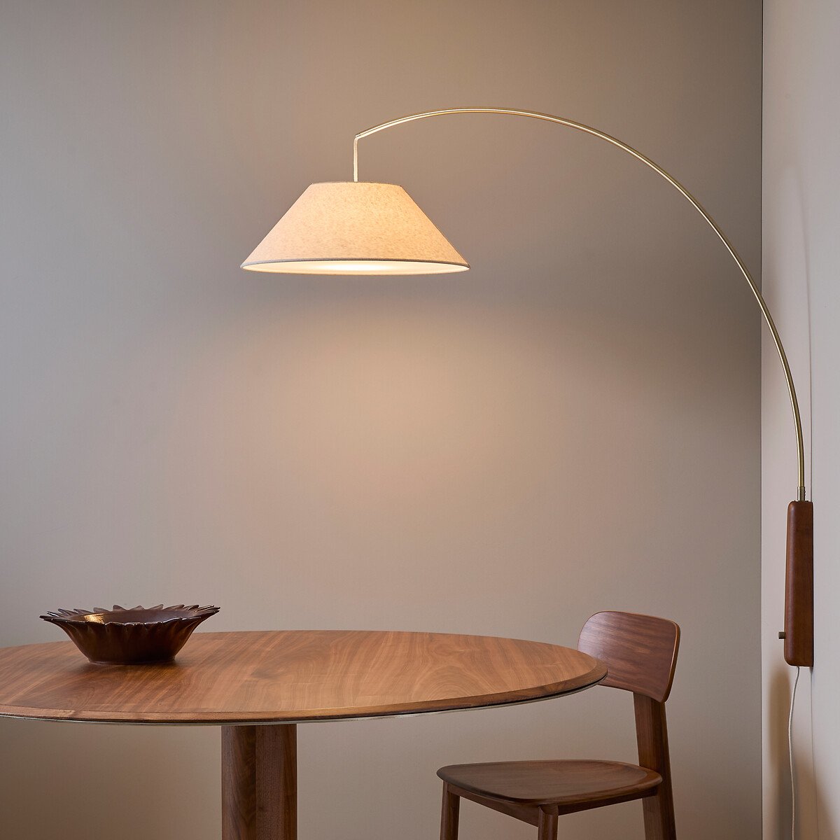 Льняной абажур с рассеивателем дает теплый, мягкий свет, идеально подходящий для структурирования пространства и создания интимной атмосферы.