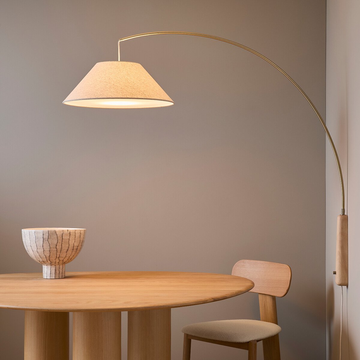 Льняной абажур с рассеивателем дает теплый, мягкий свет, идеально подходящий для структурирования пространства и создания интимной атмосферы.