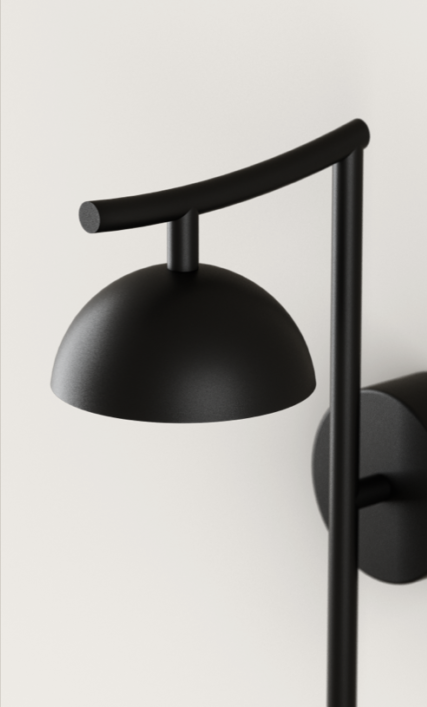 Настенный светильник, выполненный из металла в матовой черной отделке.