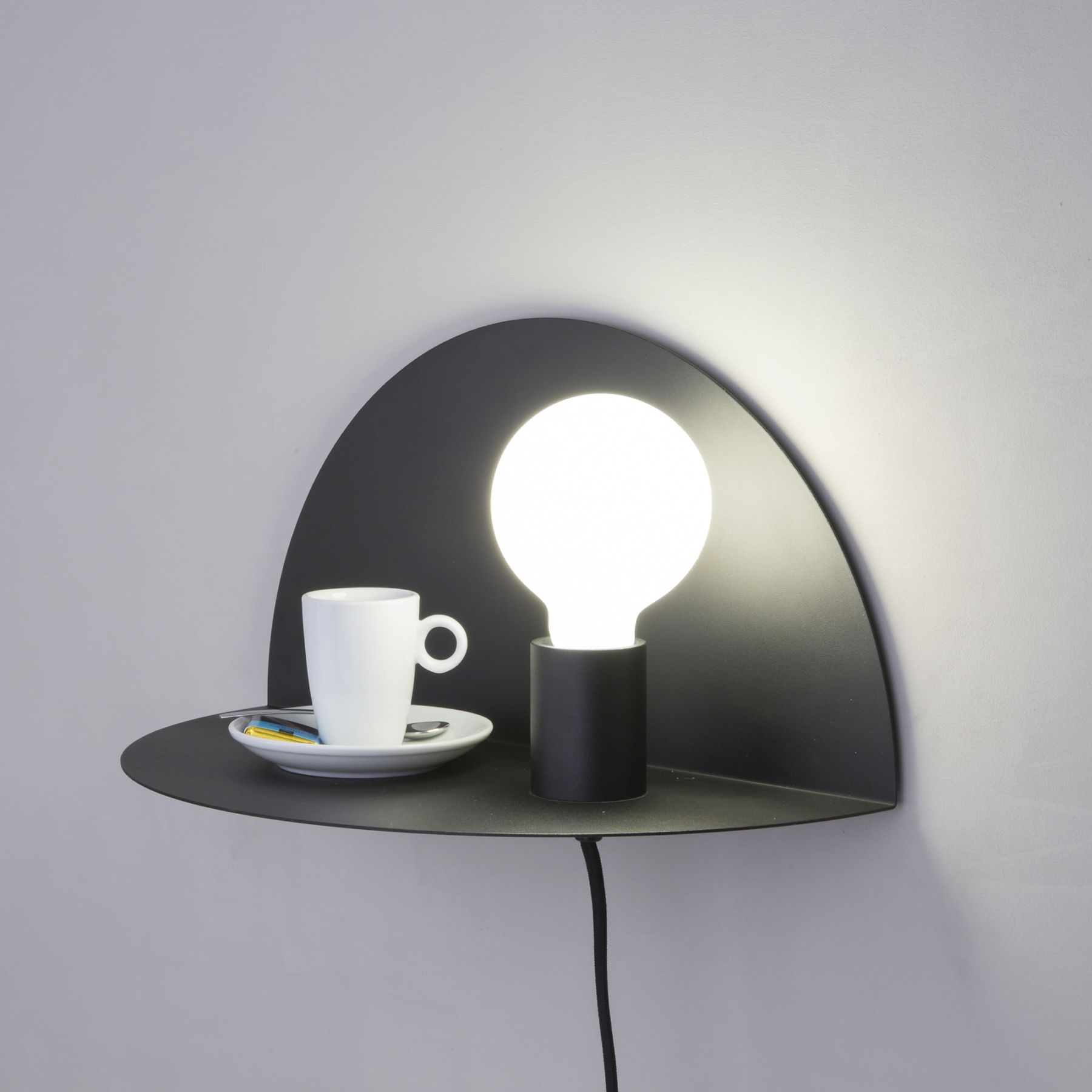 NIT - дизайнерский настенный светильник, созданный Гулой Фигера. Его структура представляет собой сложенный круг. Одна сторона позволяет прикрепить его к стене, а вторая идеально подходит для преобразования в полку. Патрон лампы дает теплое прикосновение, идеально подходящее для освещения спальни.