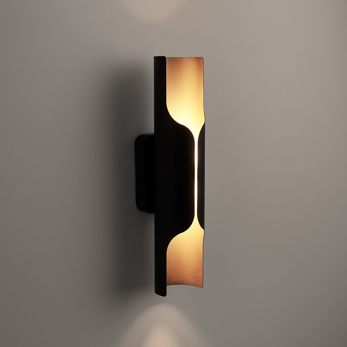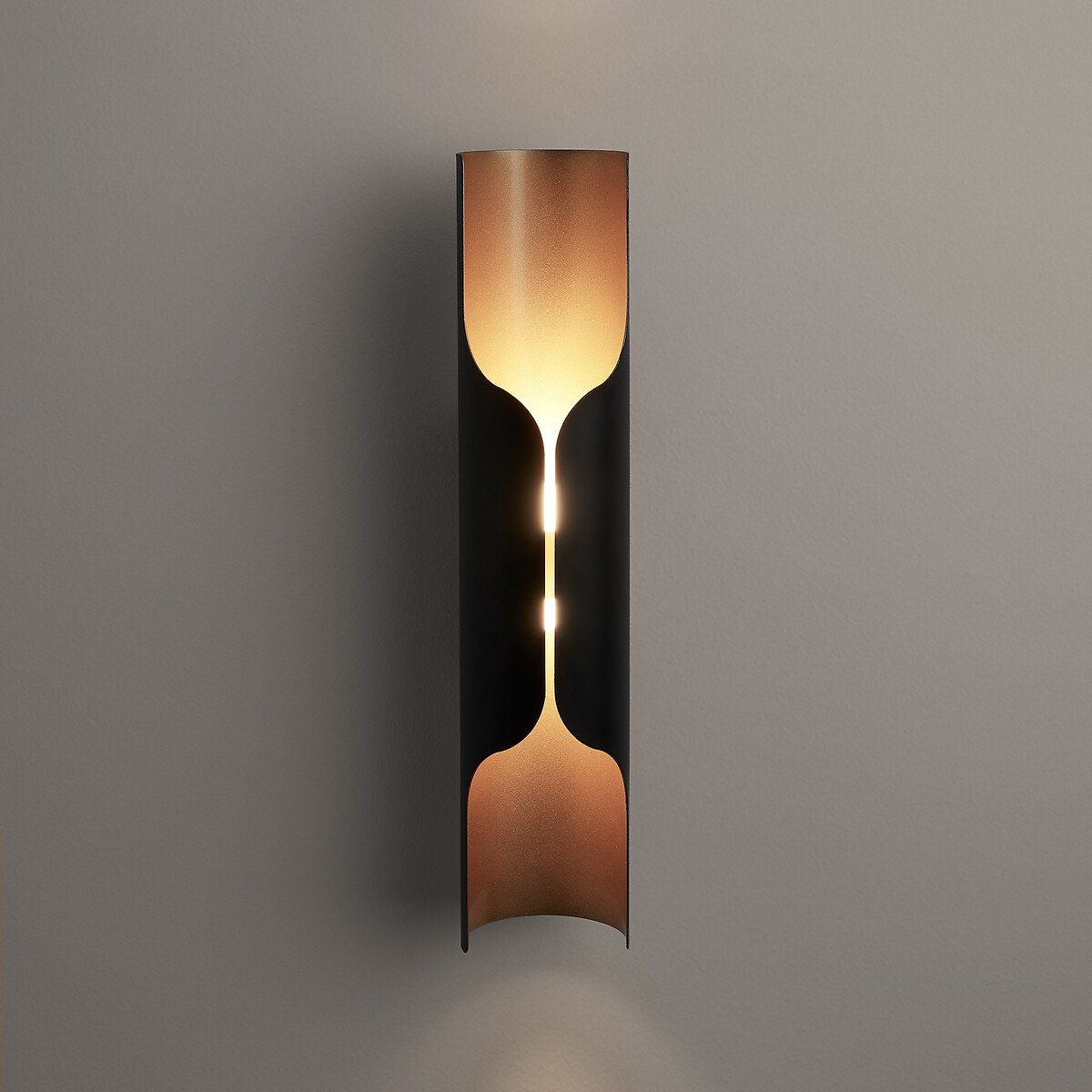 Светильник Henrio / Хенрио выглядит, как настоящий предмет искусства, к тому же еще и освещающий пространство. Настенный светильник излучает мягкий рассеянный свет, который отражается от основания благодаря золотистой отделке.Его трубчатая форма напоминает орган и вдохновлена эстетикой 70-х годов.Описание • Наружный каркас из гнутого железа с эпоксидным покрытием • Внутренняя сторона железной детали с отделкой под латунь • 2 цоколя G9 для ламп мощностью до 5 Вт (не входят в комплект)Размеры • Ширина: 8 см • Высота: 35 см • Глубина: 10 смРазмеры и вес упаковкиОдна упаковка • Д16 x В42 x Г13 см, 1 кг