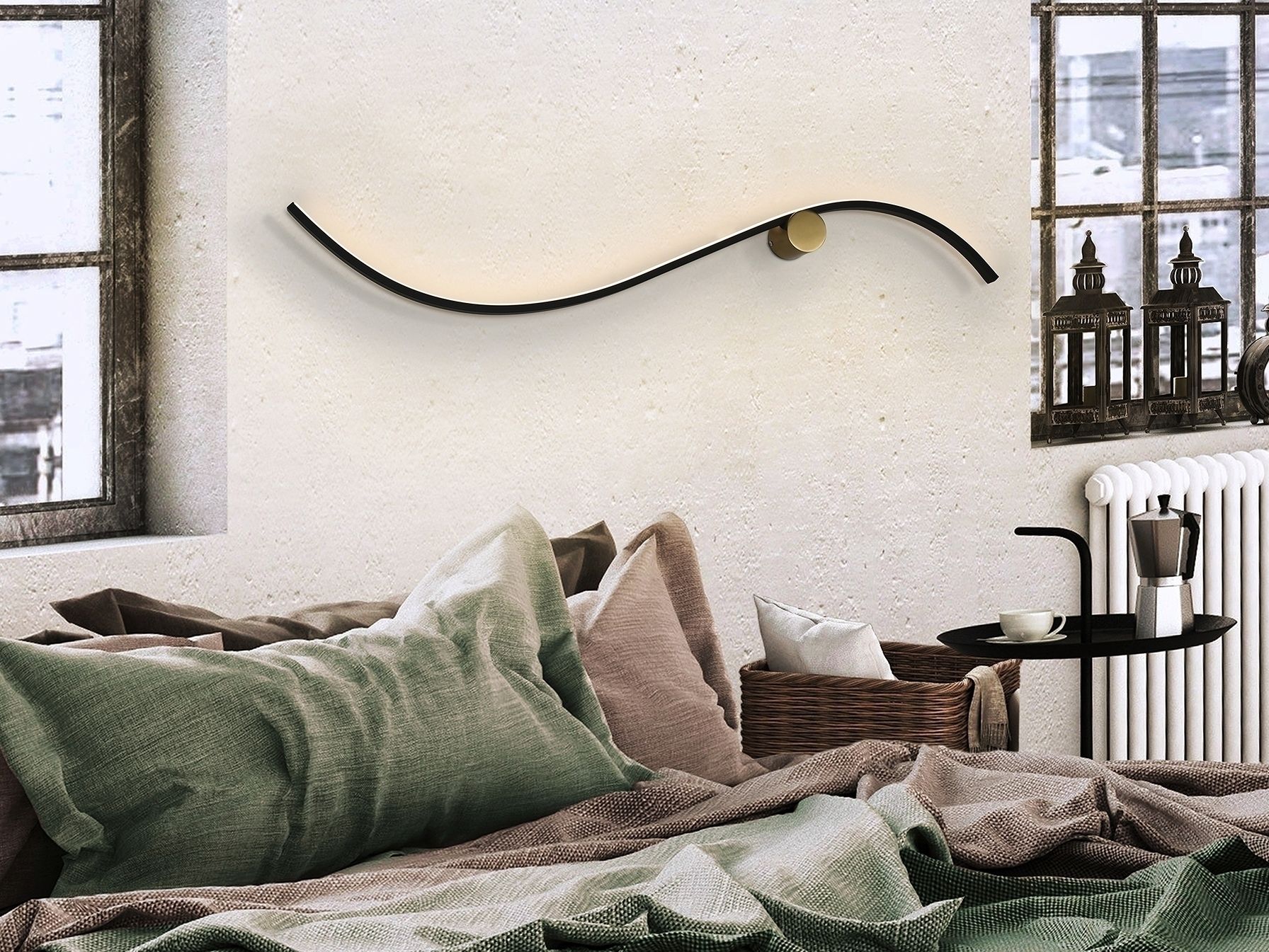 Настенный светильник из металла и алюминия, матовая черная и золотистая отделка. Опаловый силиконовый рассеиватель. Светодиод 13 Вт, 1050 лм, 3000 К.