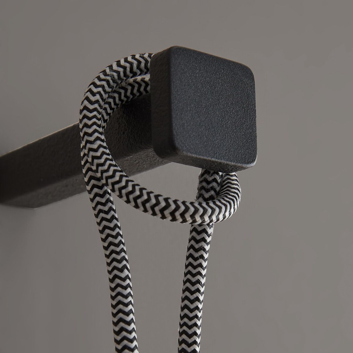 Доступен в двух размерах, адаптируется под ваши потребности: можно подвесить его на потолок, закрепить на стене или повесить на металлической ножке (для версии мини) благодаря элегантному электрическому кабелю черно-белого цвета.