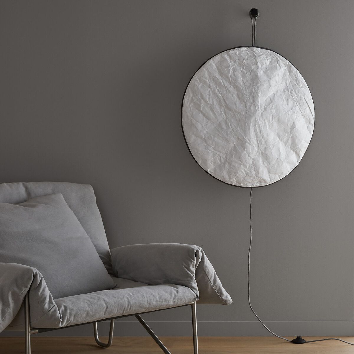 Абажур из материала Тайвек®, окантовка из серого хлопка, скрывающая кронштейн на магните