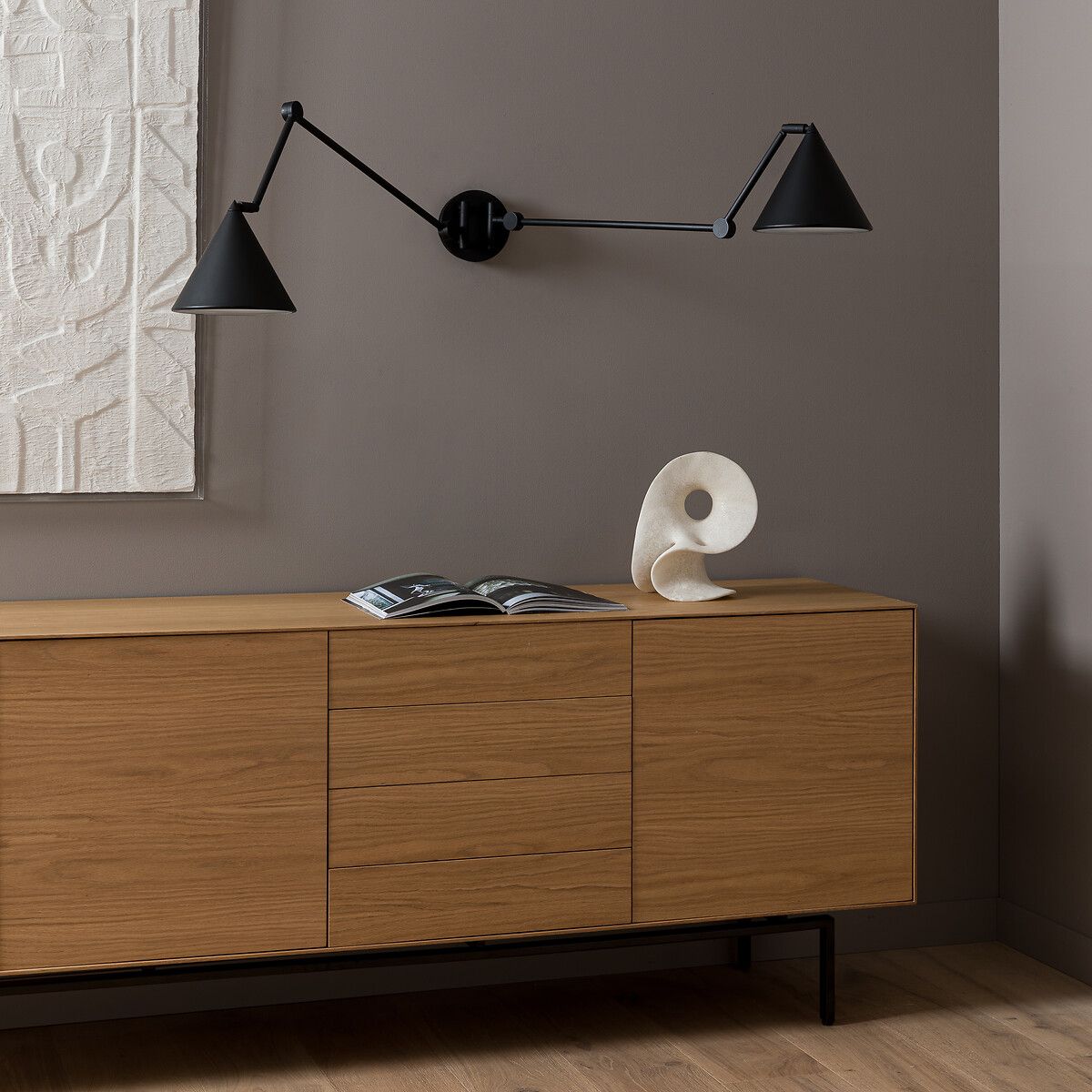— Бра на шарнире и абажур могут вращаться в разных положениях.