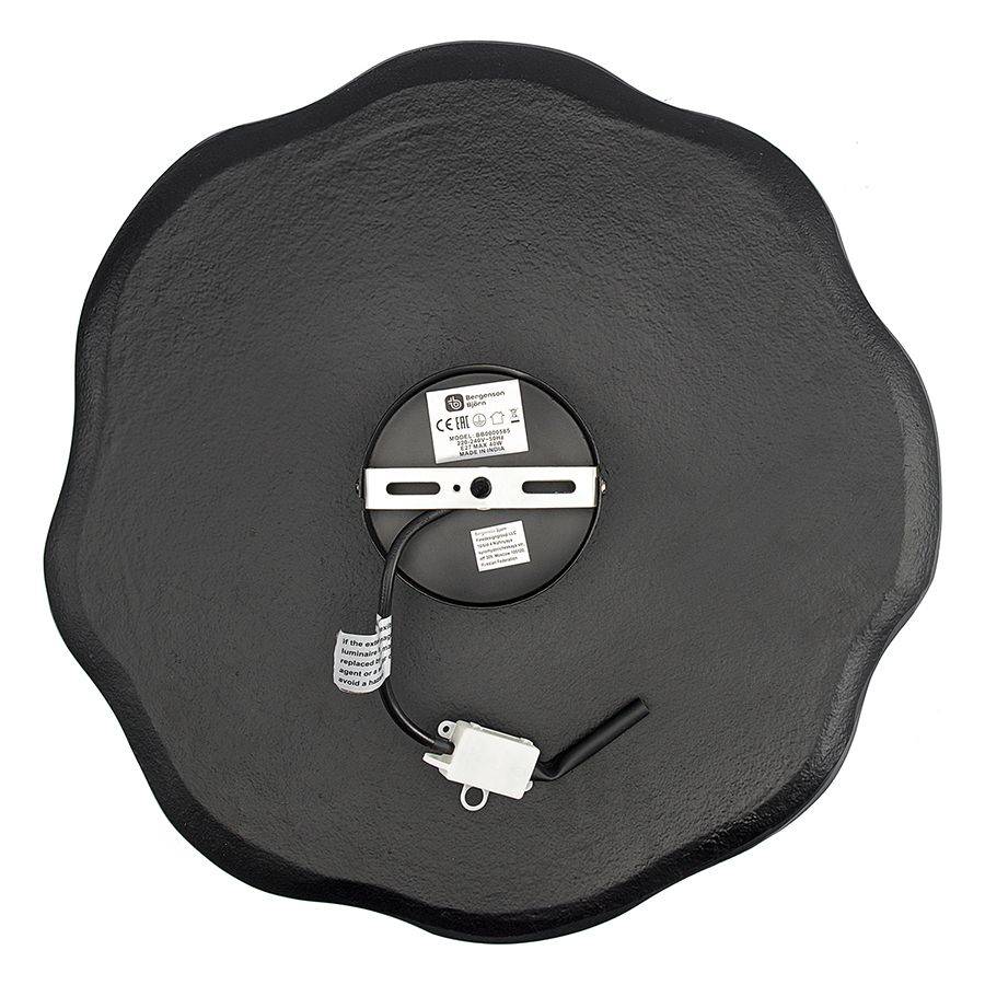 Материалы: алюминий, железо. Диаметр: 46 см. Цвет: черный. Тип цоколя: Е27. Максимальная мощность ламп: 40 Вт. Максимальное напряжение: 220-240 В. Площадь освещения: 2,7 кв.м. Степень пылевлагозащиты: IP20. Класс защиты: I. Лампы в комплекте: нет. Длина шнура: 20 см.