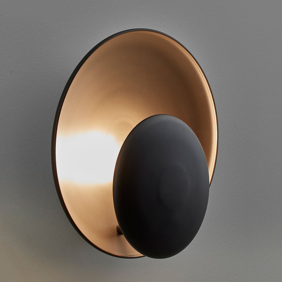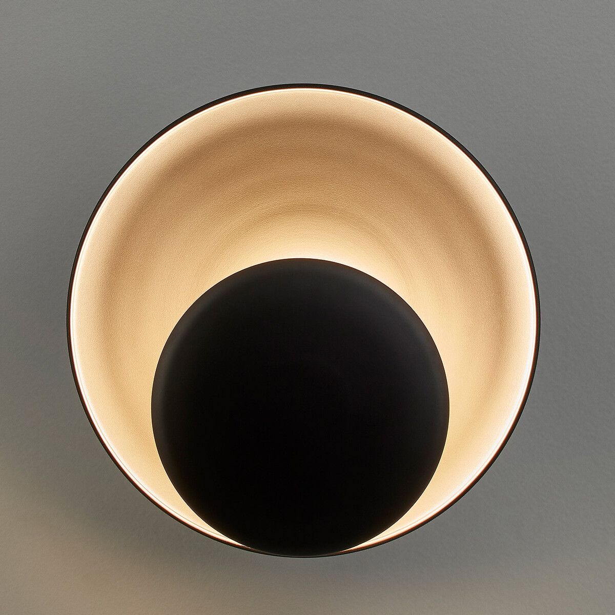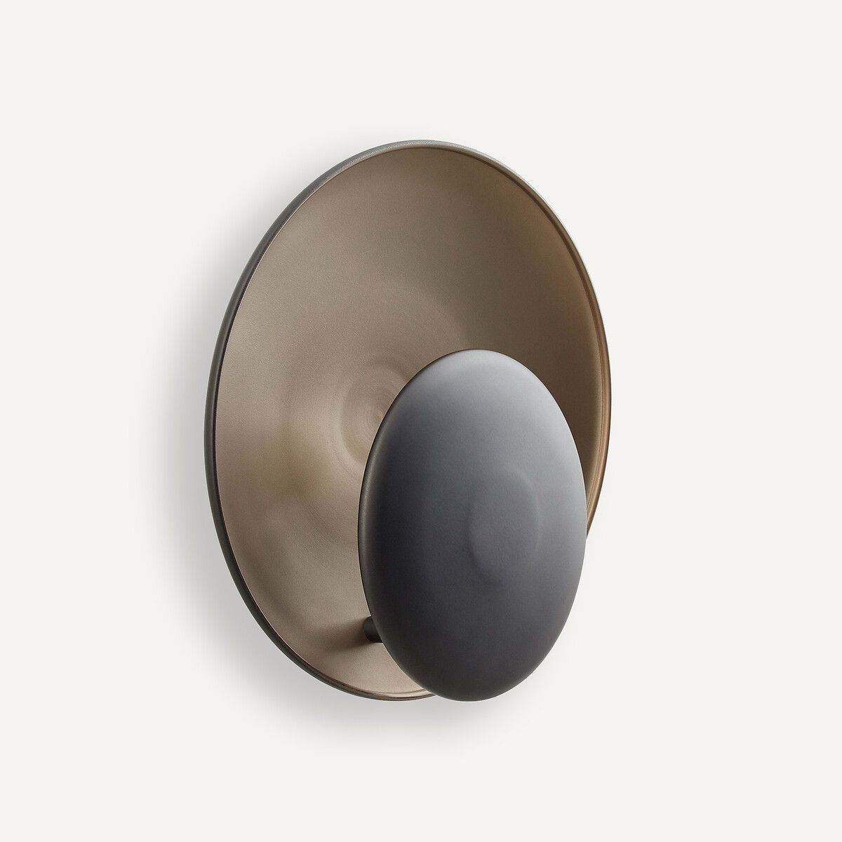 Состоящий из двух диффузоров, как-будто при затмении солнца, светильник Naton рассеивает мягкий свет. Детали отделки: металлические обручи из черного цвета и цвета мокко.