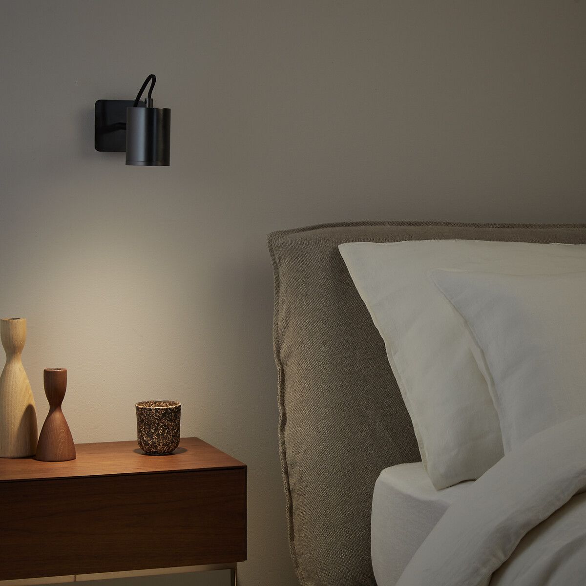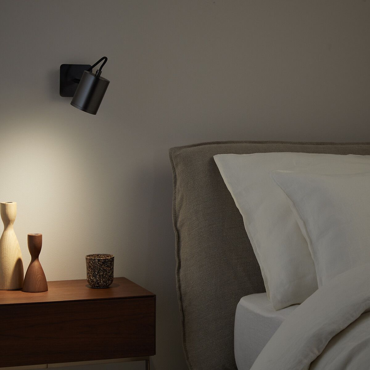 Плафон, поворачивающийся на 360°, позволяет направить свет точечно на стол, кровать или кресло.